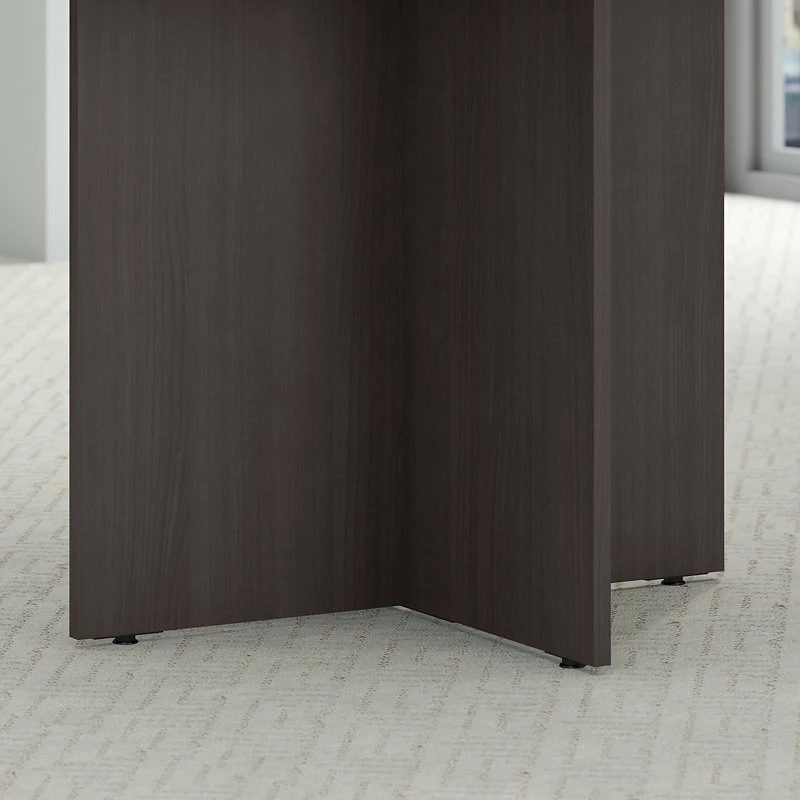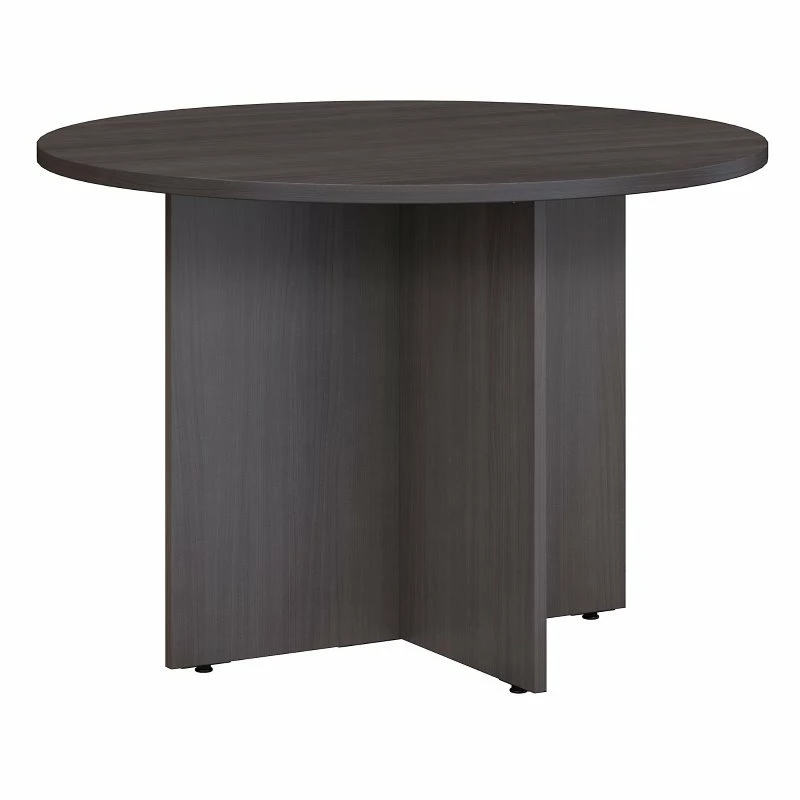 Bring your team together in a private or open plan office with the Bush Business Furniture 42W Round Conference Table. At just the right size, this small meeting table provides ample room for up to 4 users to collaborate with laptops, paperwork and other materials without taking up too much floor space. A durable thermally fused laminate work surface with continuous edge banding protects against scratches, stains, nicks and dings throughout years of daily meetings while a finished underside helps prevent snagged clothing. The conference room table is supported by a sturdy wooden base for a weight capacity of 125 pounds, making it great for use in a variety of professional and educational settings. This small office table is tested to meet ANSI/BIFMA quality standards for safety and performance and is backed by a Limited Lifetime Warranty. American made with U.S. and imported parts.