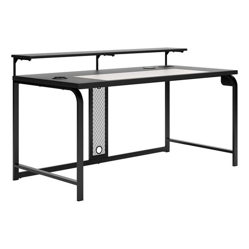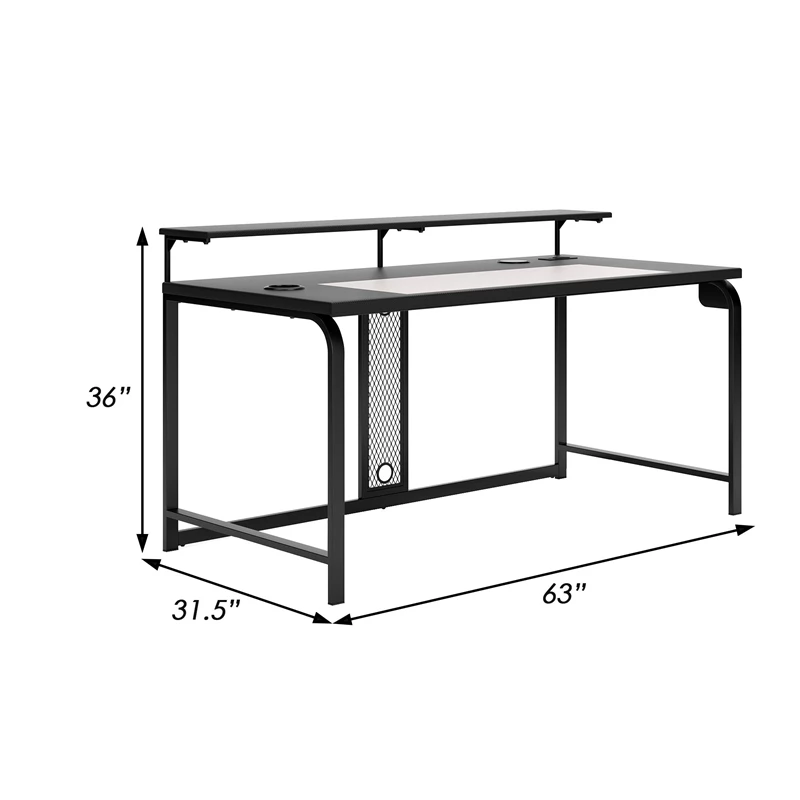 Perfect for working at your home office or gaming, this office desk features a raised monitor stand with LED ambient lights, a mesh panel to manage wires with ease, a PVC insert for smooth mouse tracking, and a built in cup holder to prevent drink spills and save space. The wireless Qi charger with 110V power supply and dual USB ports mean that you can plug in your electronics and charge your phone all without an extension cord.