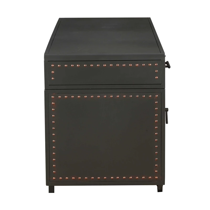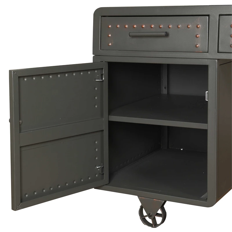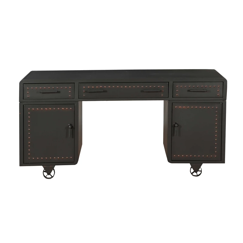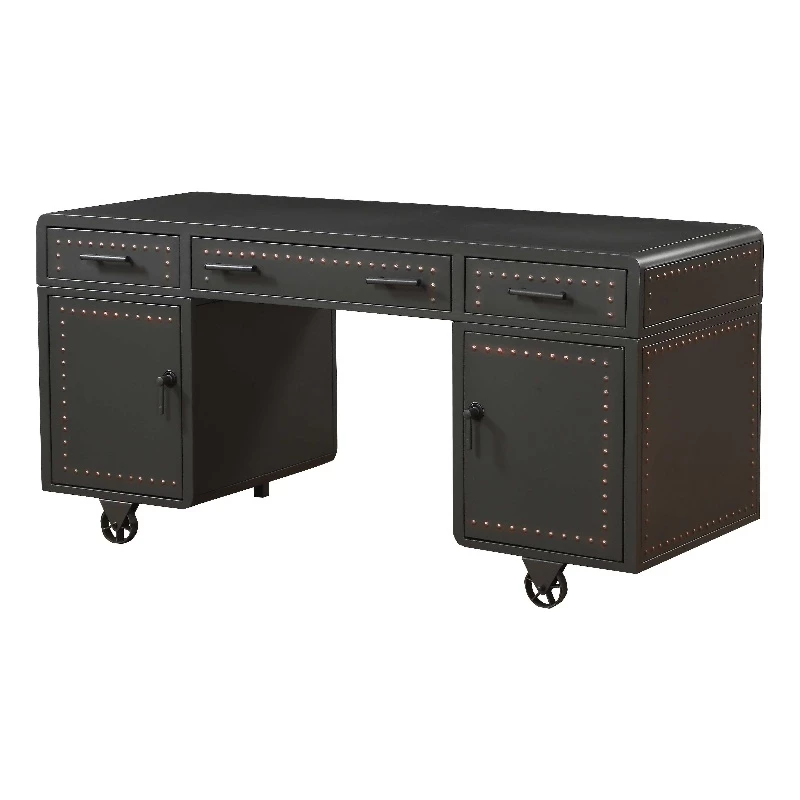 The industrial and classic design of the Actaki desk creates a spacious work area. The drawers maximize your space and your options in classic style, while keeping all your essentials neatly and safely tucked away. The gray finish and industrial style wheels, add a different look to any work space. Some Assembly Required.