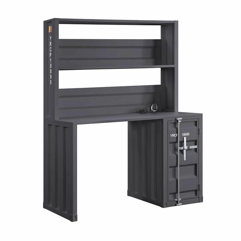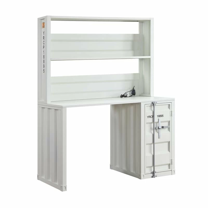The Cargo computer desk and hutch have a industrial look and ample space that makes it perfect for your dorm, bedroom, or home office. This computer desk constructed of durable iron metal in a crisp white painted finish. It has a top compartment as well as one storage base to offer plenty of space to keep your office accessories.