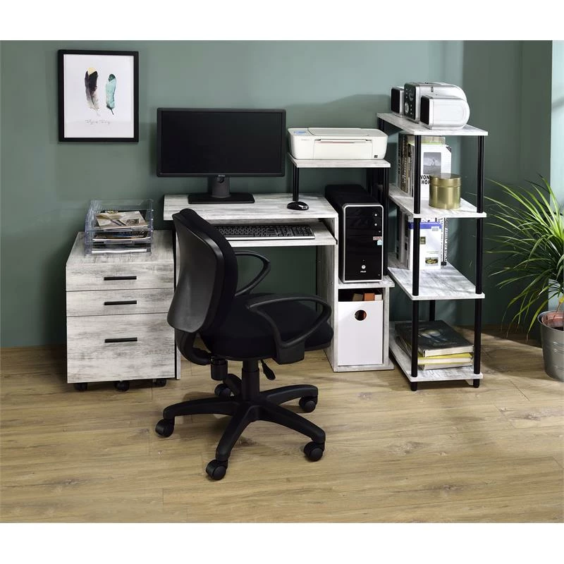 Begin your decor with your office at where you put in eight hours a day. Crafted from wood, the wooden desk in rustic wood finish makes your workplace natural and down to earth. It features two open storage compartments with a desktop shelf ,while a under-desk tray keeps your keyboard hidden and frees up desktop space. Embrace natural warmth and organize your office in style with the Lyphre desk.