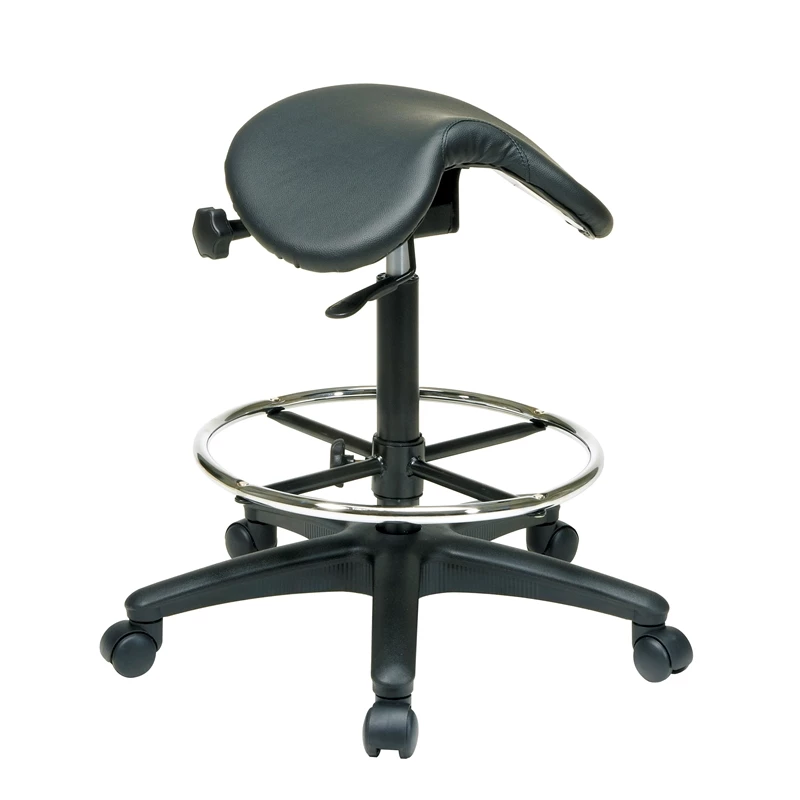 Adjustable Backless Black Vinyl Saddle Seat Stool with Adjustable Foot Ring