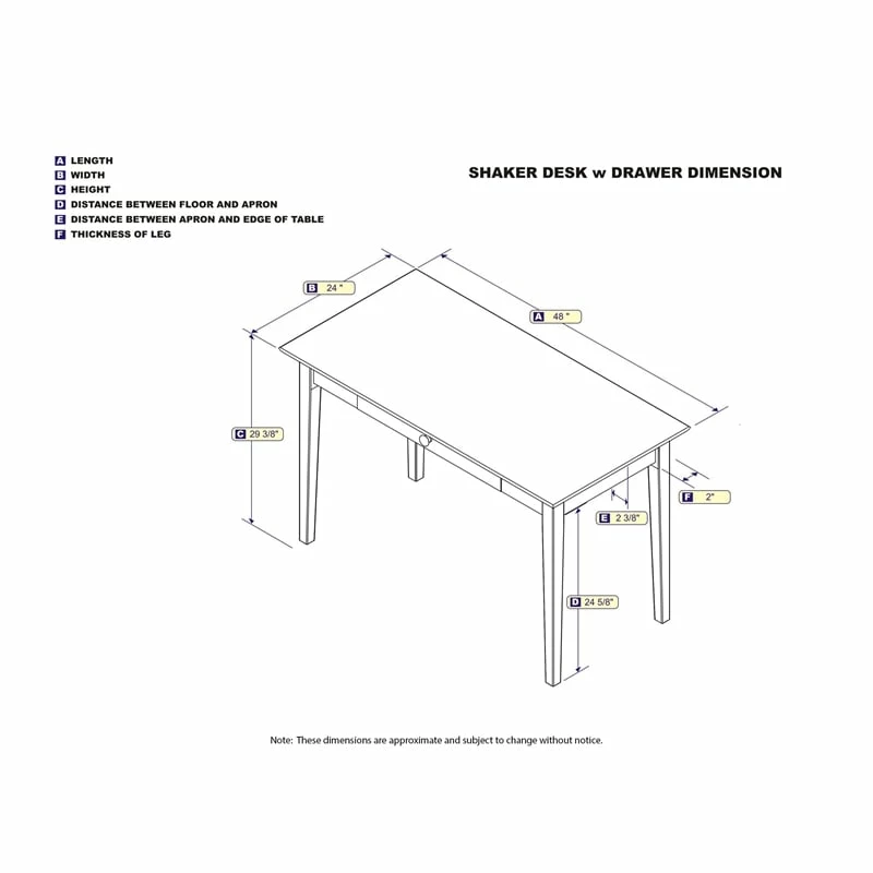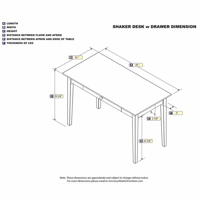 Start enjoying your work a little more with the Shaker writing desk. With its timeless design, where modern meets classic, you can be confident in knowing you are getting a desk that will fit any office design. Featuring a large work space, you can you can easily fit all your work essentials while still having room for all your favorite desk accessories. The added storage drawer offers even more room to make sure you always have what you need. Make your work environment a little less stressful with the simplicity of the Shaker writing desk.