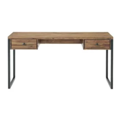 This collection of rustic wood and metal provides unpolished elegance to your space. With functional drawers each piece is uniquely yours. Knots, cracks and even rough-hewn edges showcase the wood’s original qualities. Our lacquer finish with light and dark tones allows for the wood’s natural grain to show through. This collection will make a statement in your home office.