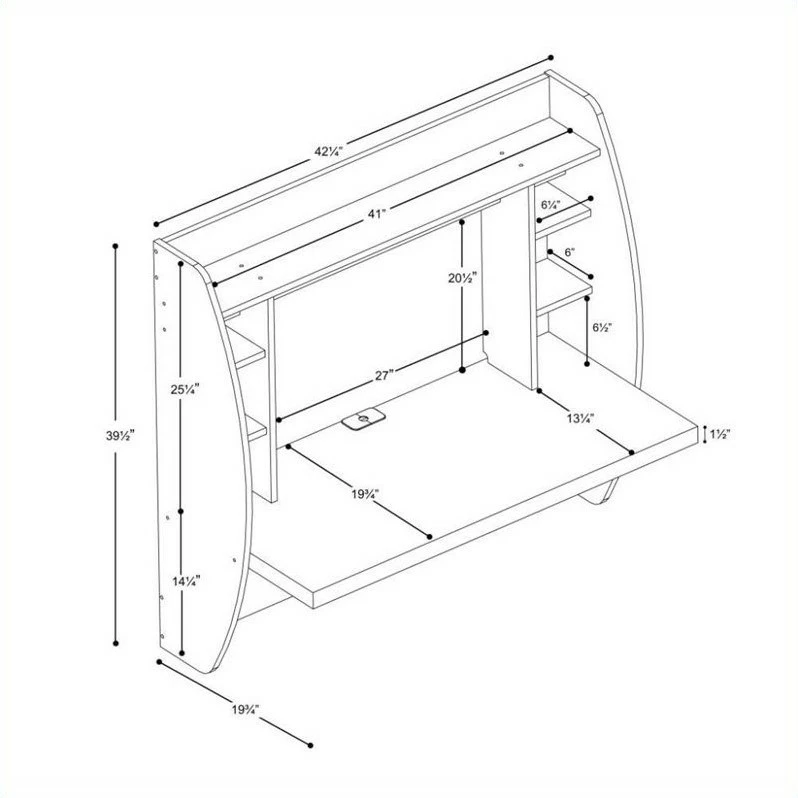 Optimize your space with Alloras innovative and stylish wall mounted desk. Perfectly suited for any home office, den, living room, kitchen or entryway. This stable work surface is perfect for your computer or simply use it as a place to get your work done. The side compartments and top shelf provide functional storage and visual appeal. Installation is a breeze with Alloras innovative metal hanging rail system. Proudly manufactured in North America using CARB-compliant, laminated composite wood. Ships Ready to Assemble, includes an instruction booklet for easy assembly and has a 5-year manufacturers limited warranty.