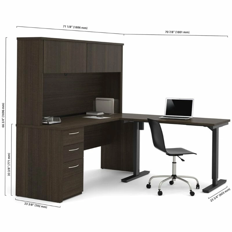 Embassy offers numerous configuration possibilities for various uses. Offering smaller desks, this collection is ideal for every type of workplace including the home office. The desk is made of a durable 1″ commercial grade work surface with melamine finish that resist scratches, stains and wear.