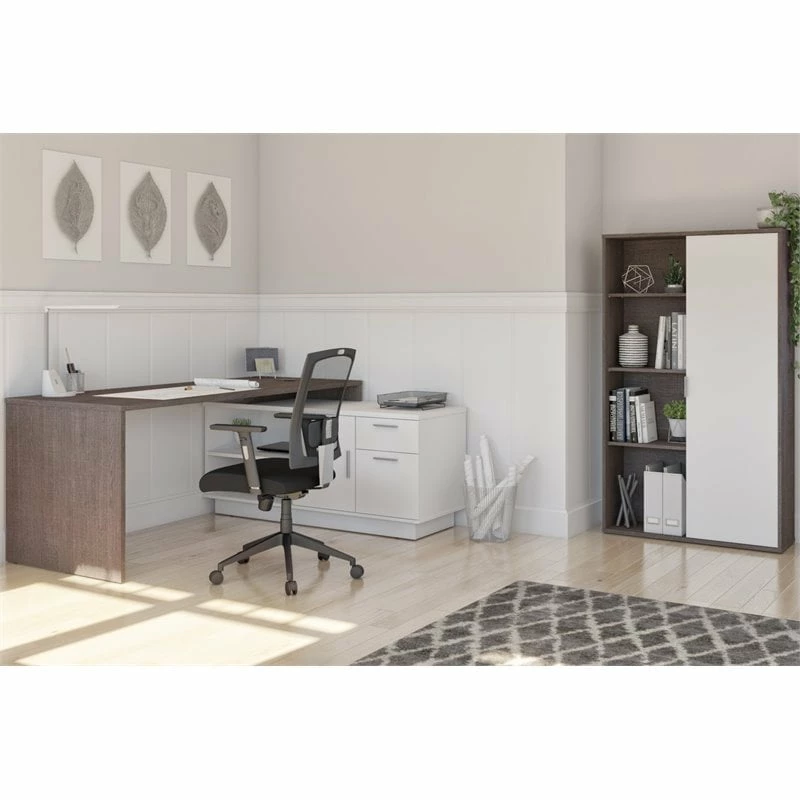 The Equinox collection is perfect if you are looking to maximize productivity and space in your office. The functional pieces from this collection feature multiple storage options so you can keep all the essentials on hand and boost your productivity. Our L-Shaped desk features a layered work surface to provide ample room for all your work activities. Pair it with our stylish storage units to create a chic and sophisticated office environment.