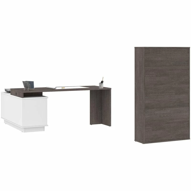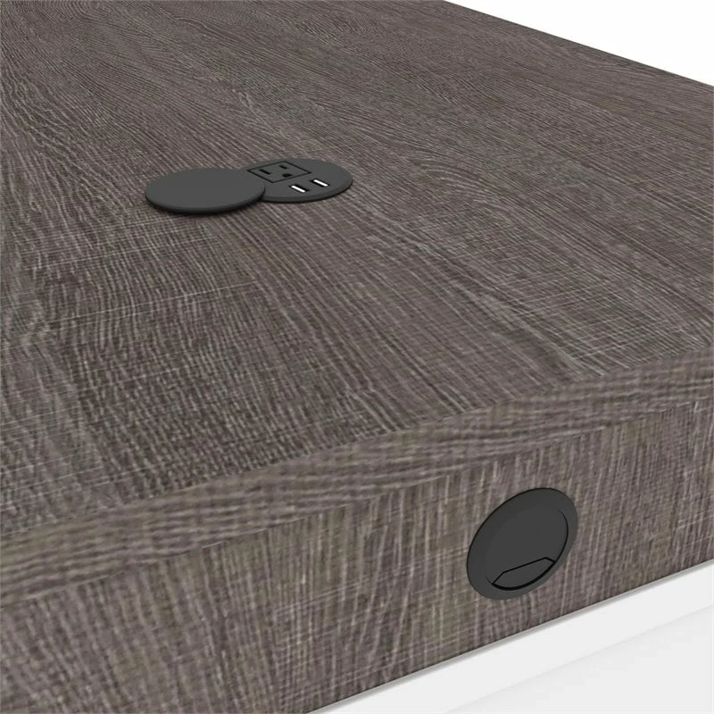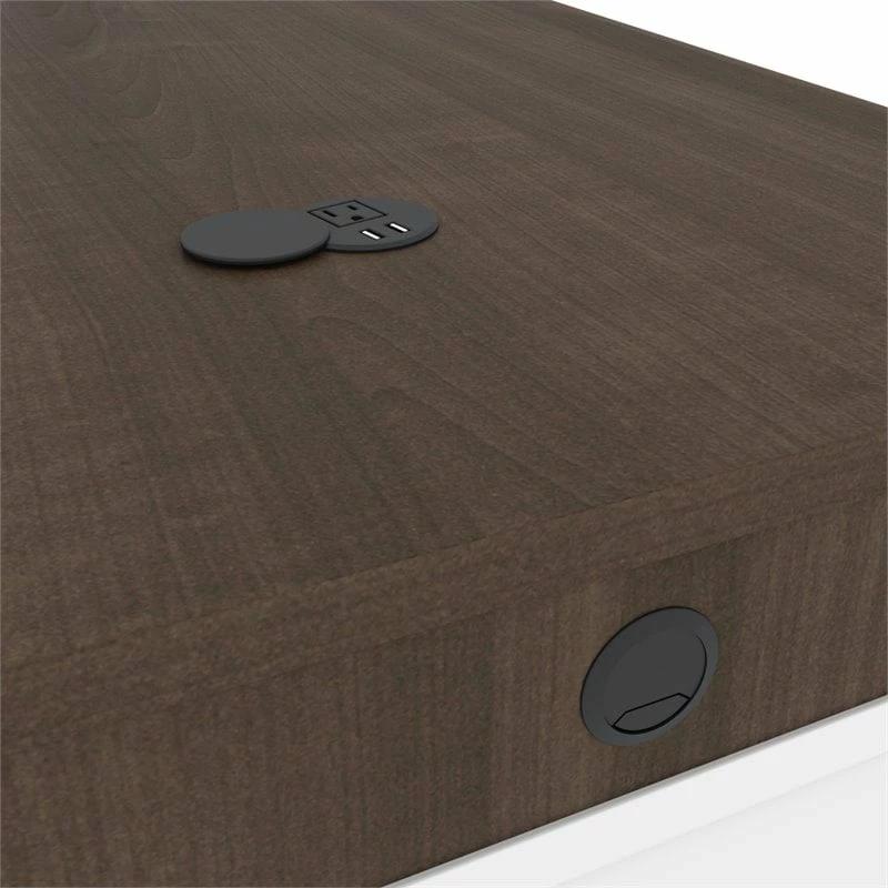 - HIGHLY FUNCTIONAL: Drawers on full-extension ball-bearing slides; desk includes 1 grommet for wire management and 1 dual power/ USB module; reversible sliding door on storage unit conceals part of cabinet to hide clutter