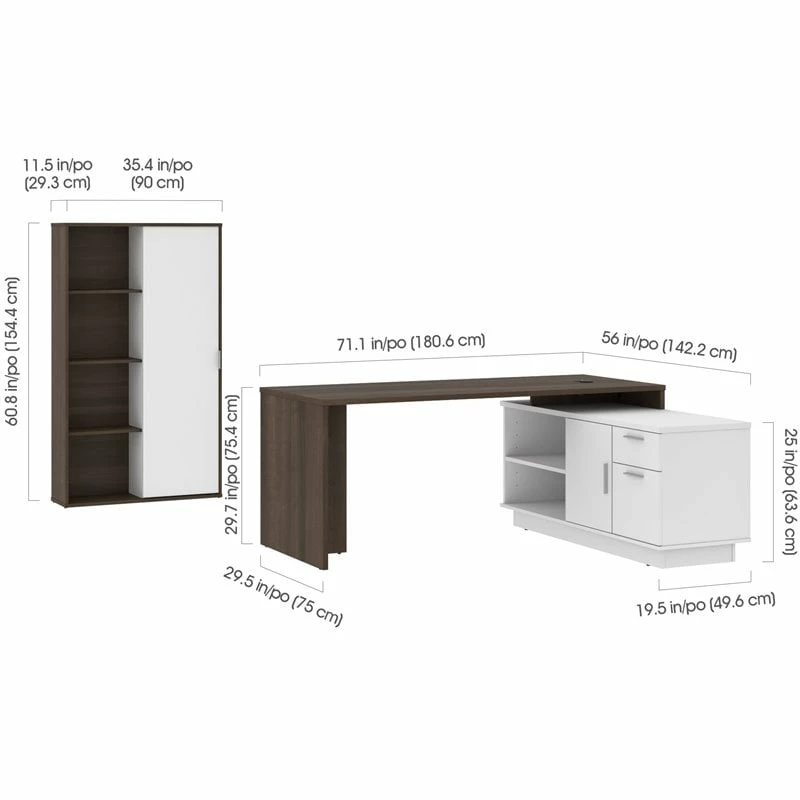 - Desk Dimensions: 29.7″ H x 71.1″ W x 56″ D
