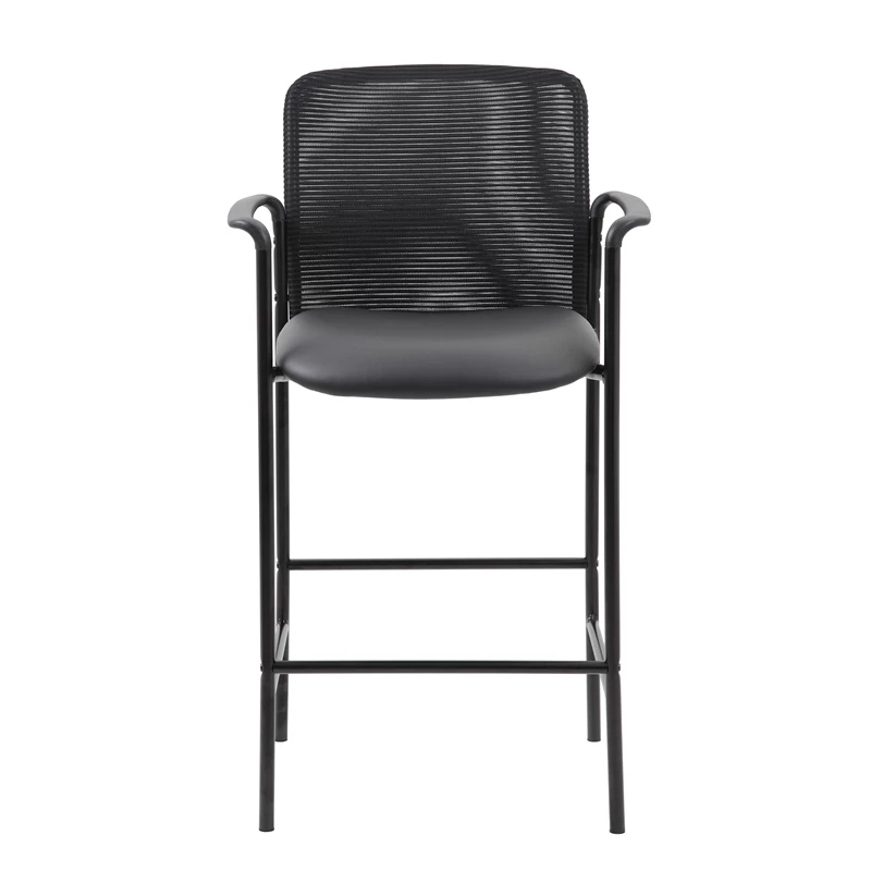The slender and sleek Contemporary Mesh Back Stool in black is a versatile seat that can be utilized from a drafting stool to guest seating. It is made from sturdy mesh with a Caressoft material on the seat. Caressoft is an upholstery that looks & feels a lot like leather, but is far more durable and can be easily cleaned with a damp cloth. The stool has fixed arms and a 4 leg tubular base made from sturdy black steel which offers a 275 lbs. capacity.