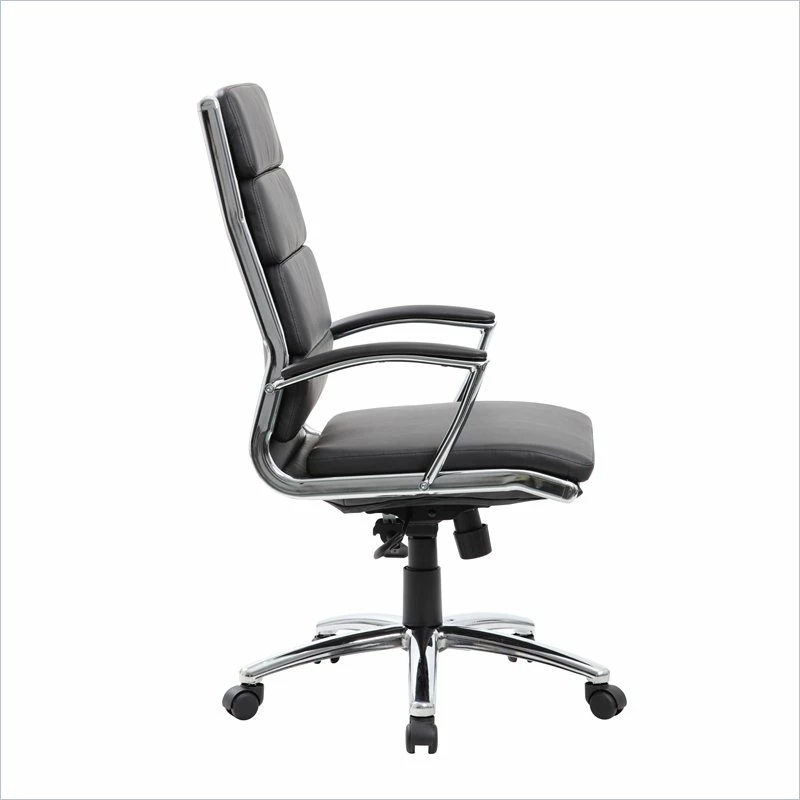 The executive CaressoftPlus chair in white with the metal chrome finish is as comfortable as it is handsome. The chair utilizes a two paddle mechanism which designates one paddle for lift and one paddle to release spring tilt or lock; it is very heavy duty. The chair is made with a material called CaressoftPlus which is a trademarked vinyl that is an ultra-soft, breathable upholstery that looks & feels like leather, but more durable & easy to clean. The chair also offers tilt tension, a pneumatic gas lift and an upright lock. It has been designed with a sturdy 27 inch chrome base with 2 inch nylon dual castor wheels and has a weight capacity of 275 lbs.