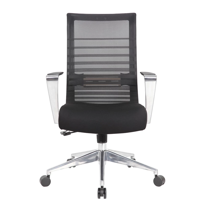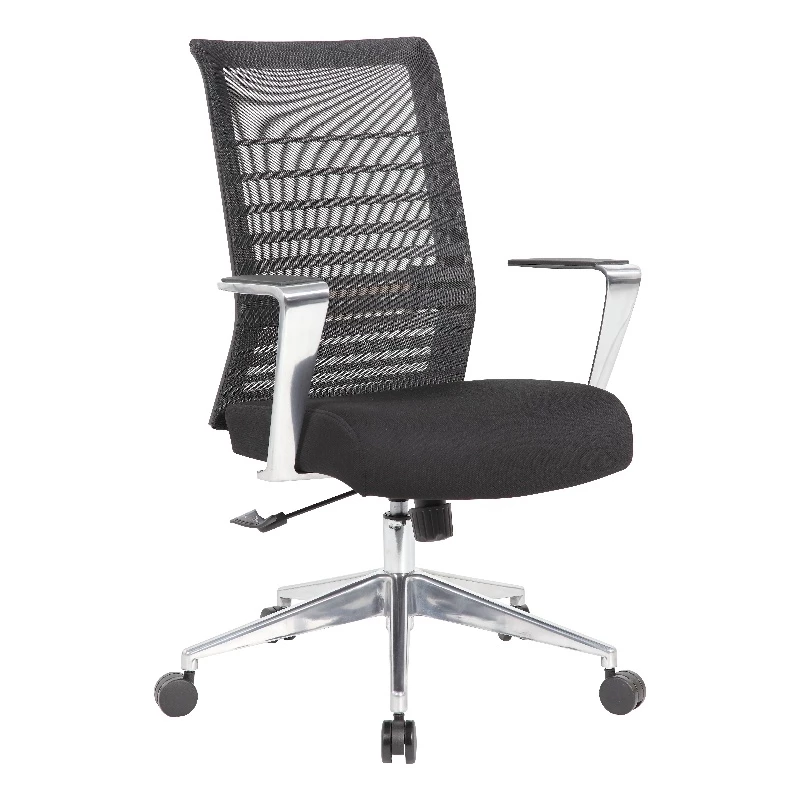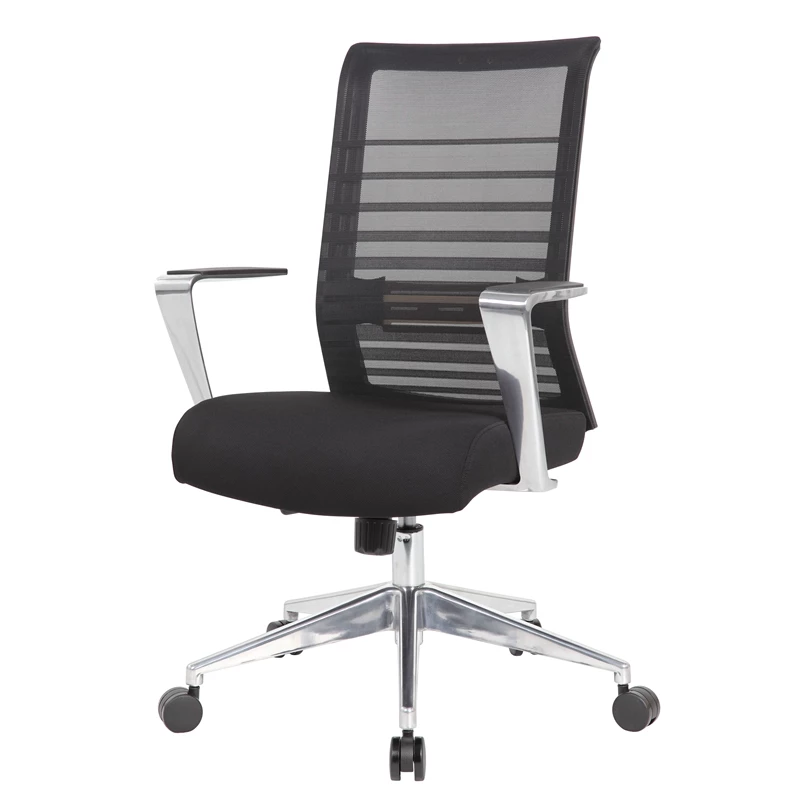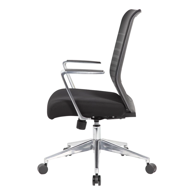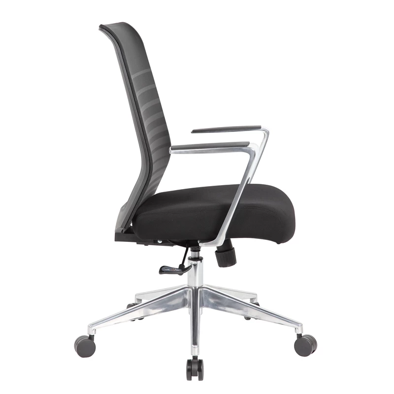 The Horizontal Mesh Back Task Chair from Boss Office Products is designed with comfort and ease in mind. The chair features a technology called a Synchro-Tilt Mechanism. This allows the backrest and seat to tilt in unison. The back tilts more than seat and is also tension adjustable. The chair also features aluminum arms and base, a pneumatic gas lift that allows for easy adjustable height and a weight limit of 275 lbs. making sure it is the perfect chair for most everybody.