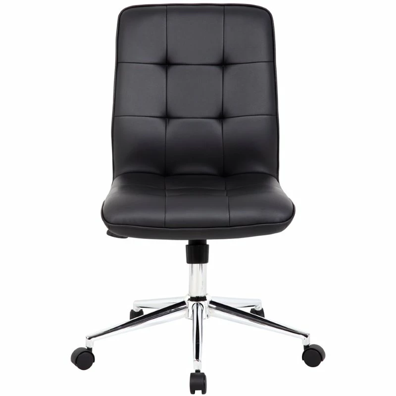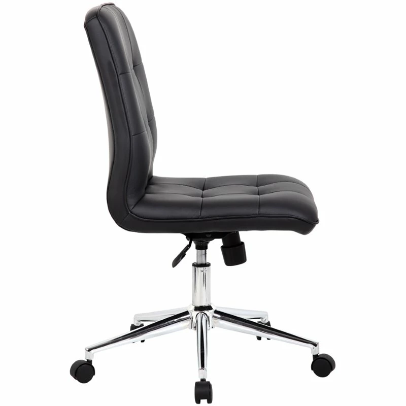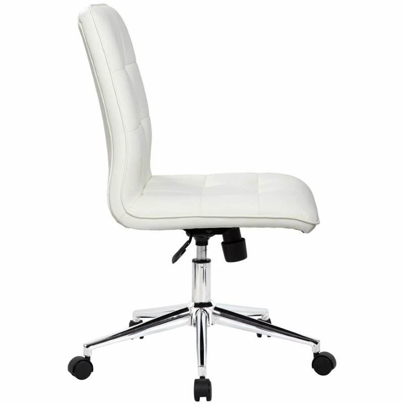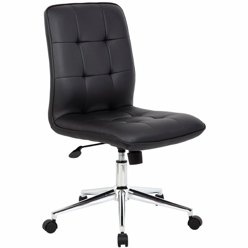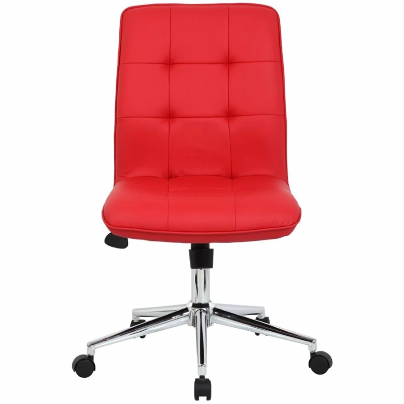 The Boss B330-RD Modern Office Chair in Red is a bold standout choice for a casual home office setting. It measures 27″ W x 27″ H x 38.5″ D and weighs a scant 24 pounds that makes it conveniently mobile. It is upholstered with ultra-soft durable red Caressoft Plus upholstery. It features a modern high crown chrome base and hooded double-wheel casters as well as a spring tilt mechanism, pneumatic gas lift seat height adjustment and adjustable tilt tension control. This model can also be purchased in black or white colors to fit your preferences.