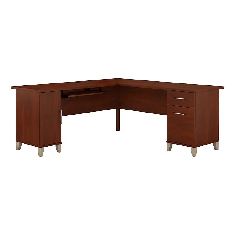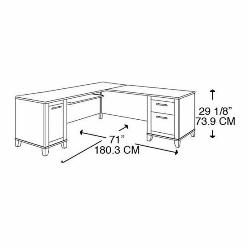 With its warm and appealing Maple Cross finish, this 71″ L-Shaped Computer Desk lends a naturalistic look to your home office. This computer desk features a rustic flair with all the conveniences of the ultra-modern.