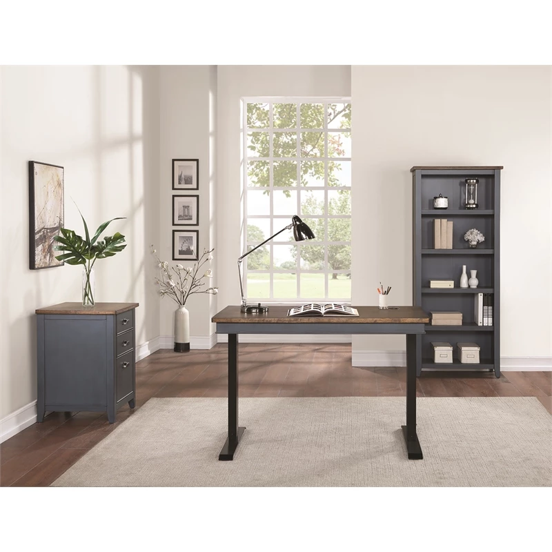 Elegant and modern, the collection invokes simple design properties tied together with earthy subtle tones that bring a soothing presence to any home or office setting. Available in lightly-weathered finishes in sage green or dusty blue the collection’s natural wood tops and dark bronze hand pulls add a touch of warmth atop clean lines and tapered legs.
