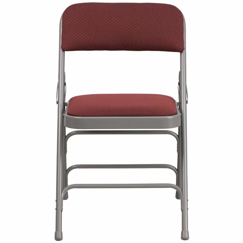 Folding chairs are a practical choice for social activities and for everyday use in the home. Folding chairs offer a simple and compact storage solution. This portable chair can be used in a variety of indoor or outdoor events. This Folding Chair was built to take on heavy usage with an 18 gauge steel frame, triple braces and leg strengthening support bars. The non-marring floor glides keep floors scratch-free for your indoor occasions. This chair was designed to keep you comfortable with a padded seat and back. After an event you can stack them on top of each other or in a row. To make transporting even easier, equip yourself with the appropriate sized folding chair dolly to make event management more effortless.
