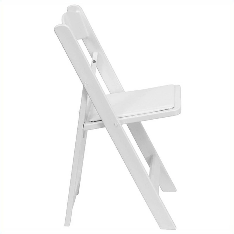 The White Resin Folding Chair combines comfort and elegance that looks good at all your special events, whether it’s a backyard barbeque, a formal banquet or beach wedding. This chair is made from ultra-strong resin that’s very lightweight, yet extremely strong and can hold up to 1000 pounds making this portable folding chair perfect for any social event, your home office or remote learning space. The smooth frame is double braced for added stability and the front brace can be used as a footrest. The color of the frame is the same all the way through, so you don’t have to worry about nicks and scratches. No re-painting or staining is ever needed; your chairs will look great for years to come. The chair comes with a detachable, washable, waterproof seat cushion filled with fire retardant foam. The easy to clean, durable design of these chairs makes them the ideal choice for indoor and outdoor use. The chairs are portable and fold compactly to transport and store.