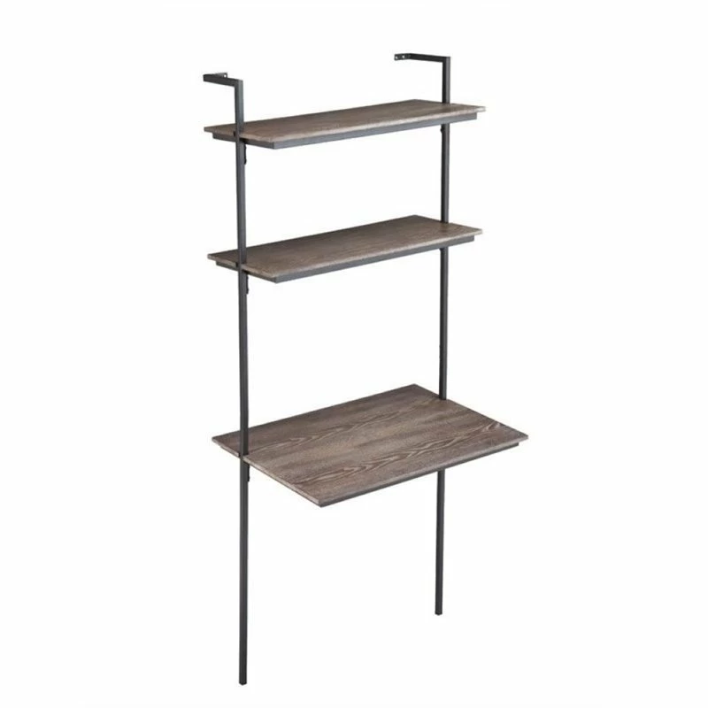 Is your home spatially challenged? With a broad workspace and two generous shelves the Wall Mount Desk is the answer for apartments or cozy homes looking to add utility and a touch of pizzazz. The burnt oak finish gives this desk a modern feel while the open architecture of the gunmetal gray frame provides a minimalist design.