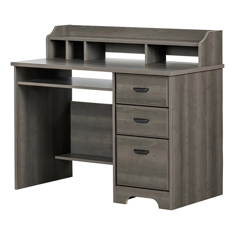 Organize your workspace with office supplies in the two upper drawers and file folders in the bottom one. The three drawers are of varying heights, so items of all sizes can fit and the small fixed shelf under the work surface can hold your laptop when you’re not using it. The other shelf at your feet is intended for books you hardly ever use. Fixed dividers make the under shelf space ideal for storing envelopes and paperwork. The top of the hutch is fully open great for keeping the things you like to have close at hand as you work. This computer desk is ideal for those who work from home, or as a homework space. The somewhat traditional look, featuring a rounded toe kick and metal handles will last through the years. Shop with confidence knowing your purchase is always covered. All our products meets or exceeds North American safety standards and our packaging are tested and certified to reduce the risk of damage during shipment. This item is shipped in 1 box, make sure to have a friend with you. Assembly is required by 2 adults and tools are not included. If you have questions regarding this product or need assistance do not hesitate to contact Bowery Hill 7 days support. This product is made in North America with laminated particleboard. Accessories not included.