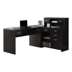 Add a touch of elegance to your home setting. The modern design showcases for a timeless aesthetic that goes with a wide range of decor themes. It has a simplicity and a flare all at once, as if inspired by the simple gown that is confident in taking up its space. This Bowery Hill Wood L Shaped Computer Desk with Hutch in Dark Brown will be a great addition to your home décor.
