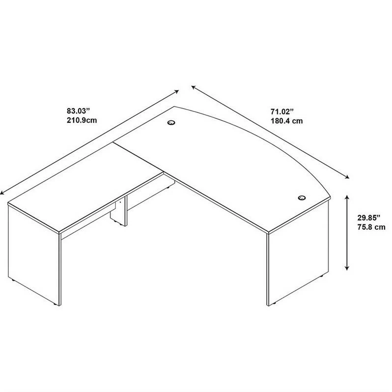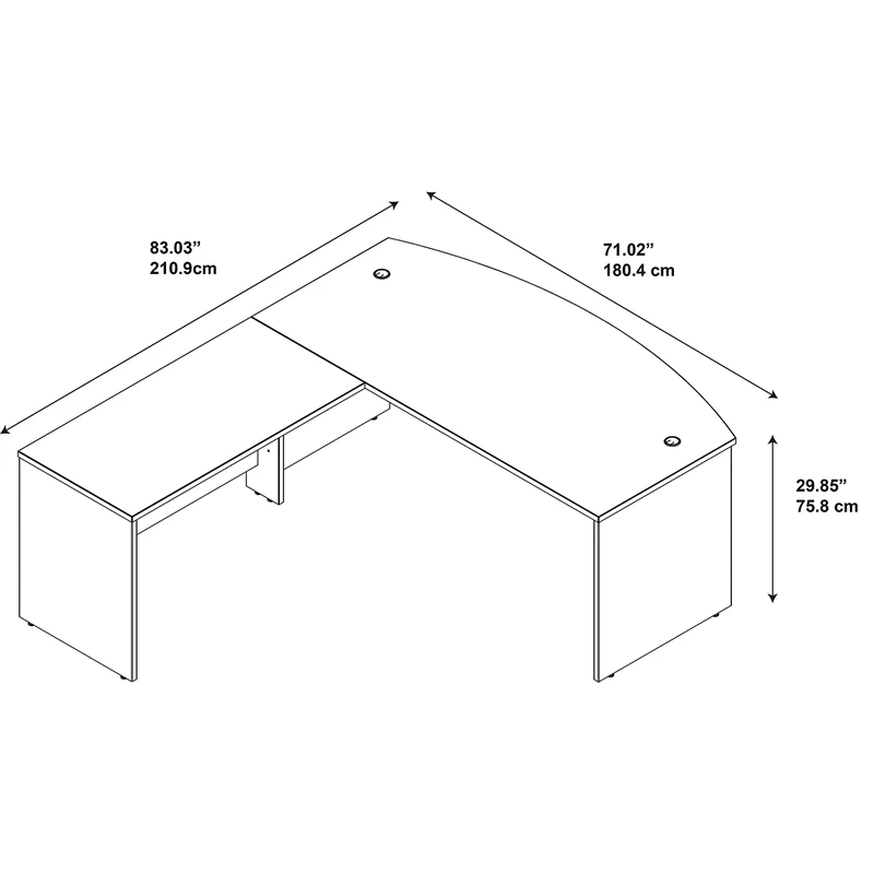 - Includes: 72″ W x 36″ D Bowfront Desk Shell with 48″ W Return