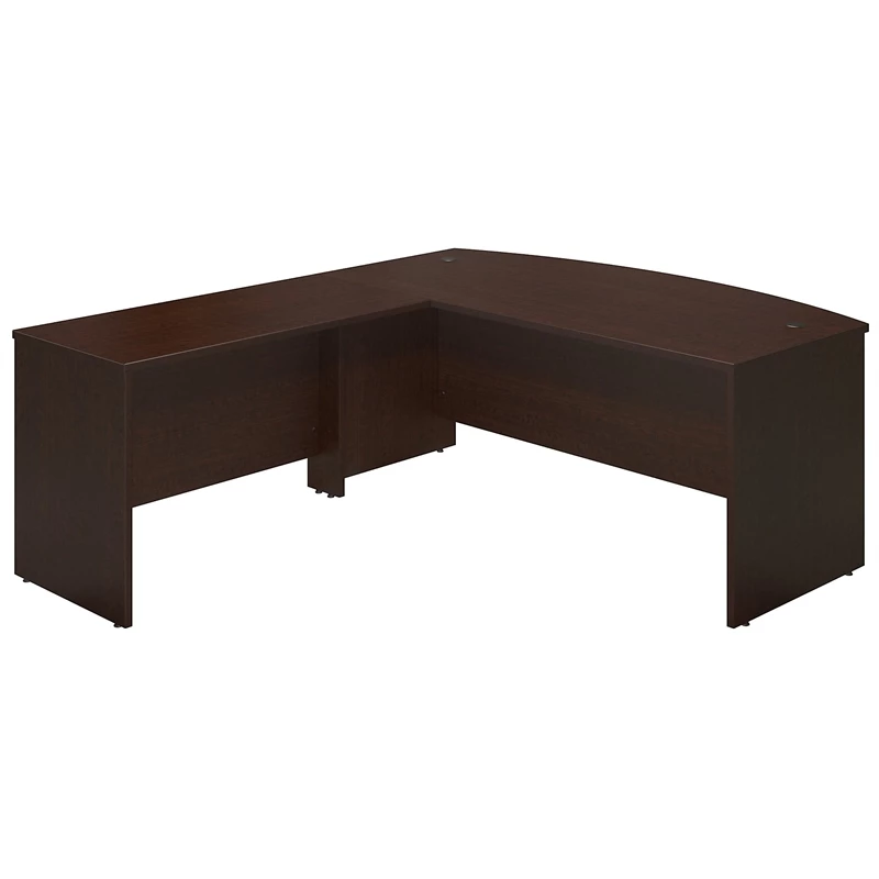 Give your workspace the professional feeling it deserves with the Series C Elite 72W x 36D Bowfront Desk Shell with a 48W Return in Mocha Cherry for an L shaped desk configuration. Features a classic desk shell design with an extended and inviting work surface area to meet with associates. The thermally fused laminate surface construction and durable edge banding delivers strength and quality with a classic rich finish for long lasting beauty. Enjoy integrated wire management grommets within desk surface to conceal cables and adjustable levelers for uneven floors. Series C Elite works well in any setting from a small private or home office to large collaborative corporate settings. Meets ANSI/BIFMA standards for safety and performance. Backed by Bush Business Furniture’s 10 Year Warranty. American made with U.S. and imported parts.