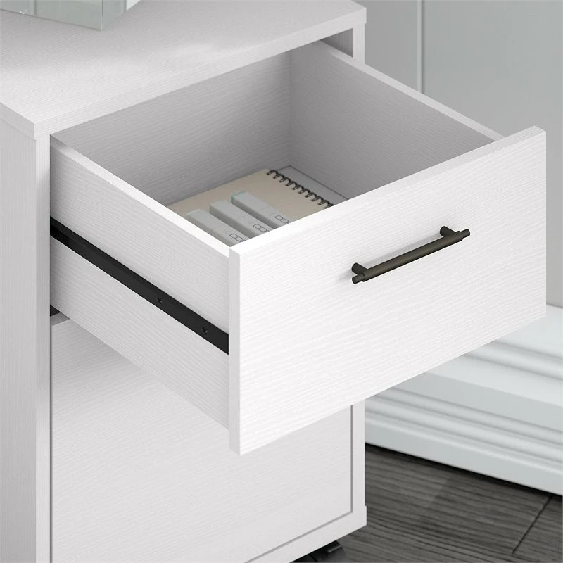 - File Cabinet can roll underneath the L Desk and features front-locking casters for secure placement