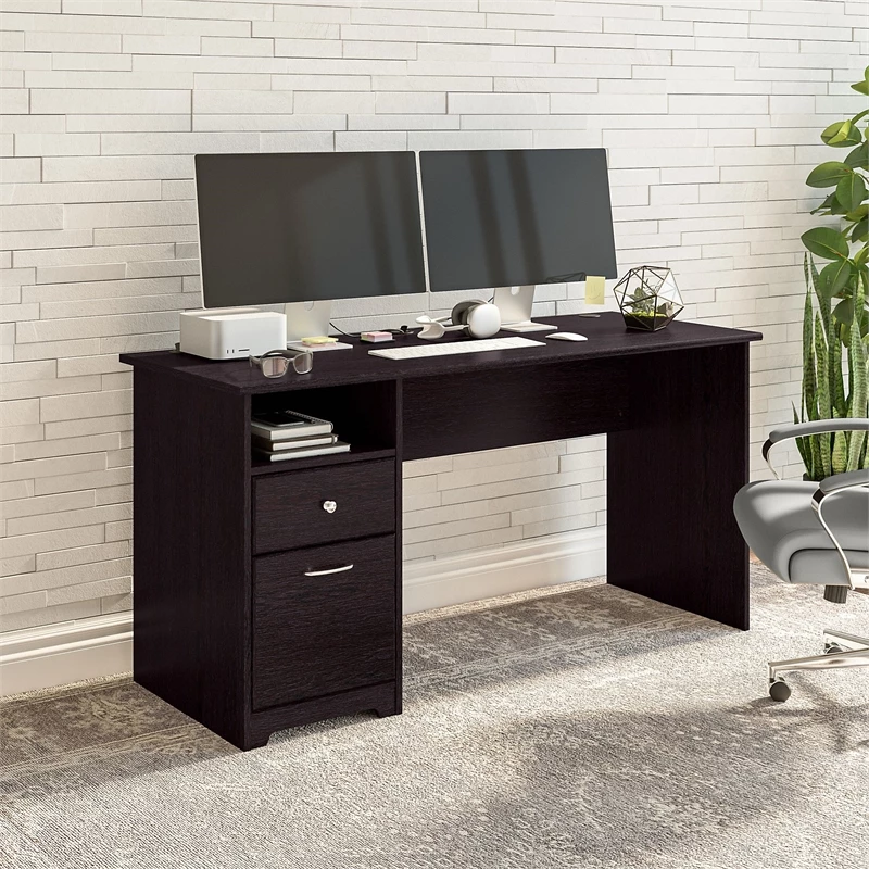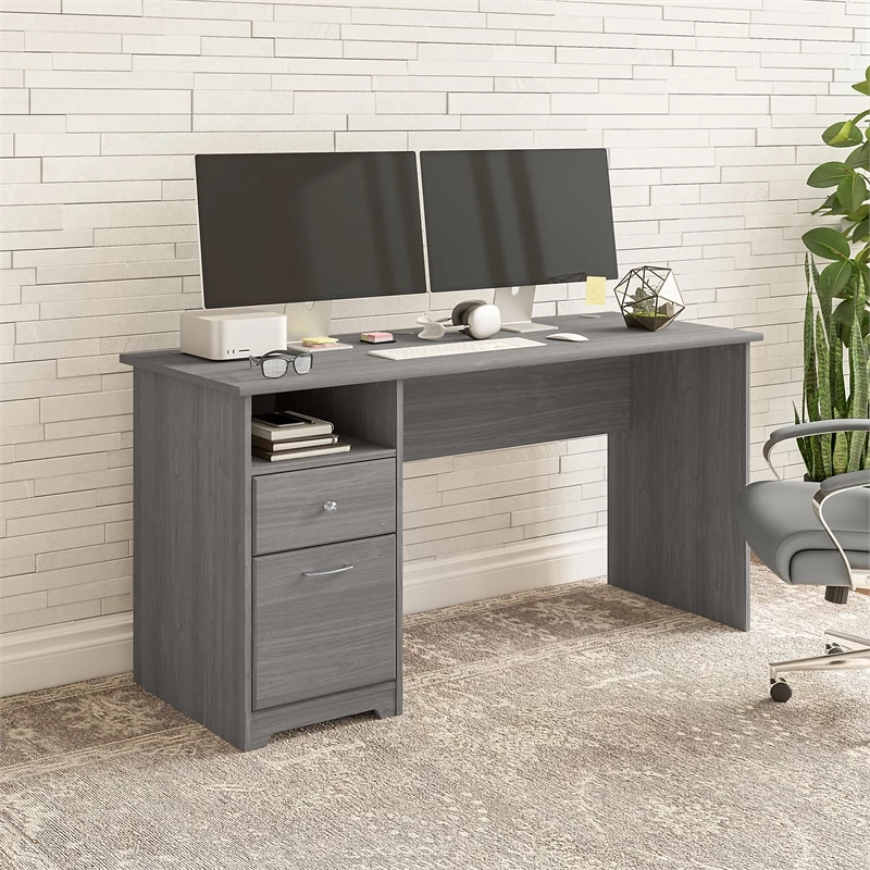 The Bush Furniture Cabot 60W Computer Desk with Drawers presents a home office solution with transitional style. Take advantage of the 60-inch desk surface to spread out with a computer, books, and all the materials you need to power through your next project or assignment. The durable desktop supports up to 200 pounds and includes built-in wire management to keep cords and cables out of the way while you work. A single file drawer opens on smooth full-extension ball bearing slides for an effortless reach to letter, legal, and A4-size paperwork. The box drawer organizes writing utensils, notepads, and other small office supplies while the open cubby shelf is perfect for work-in-progress and frequently used materials. This home office desk with storage has been rigorously tested to meet or exceed ANSI/SOHO quality standards for safety and performance and is backed by a 1 Year Warranty.