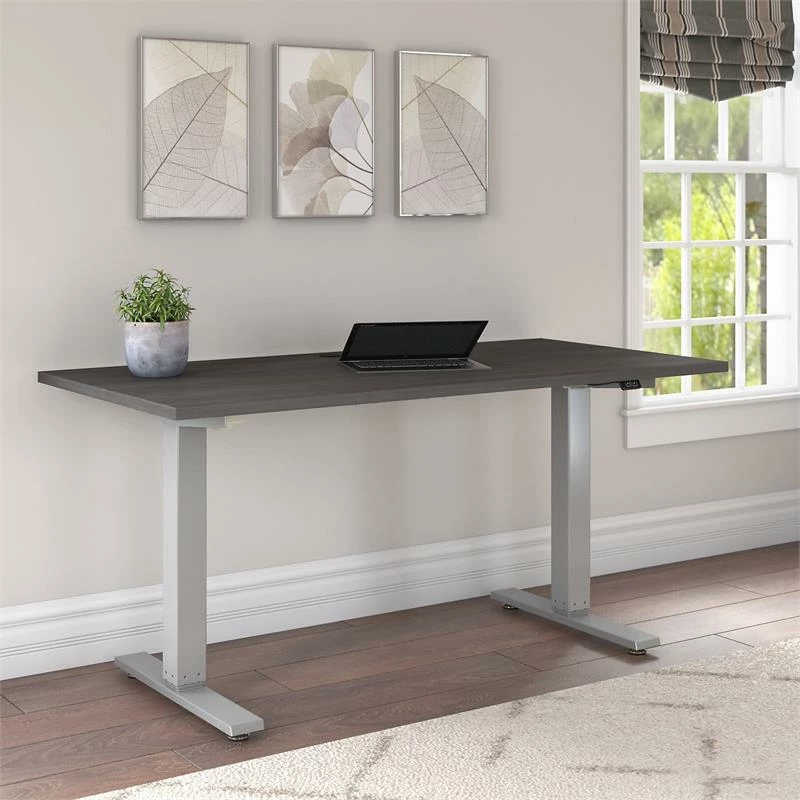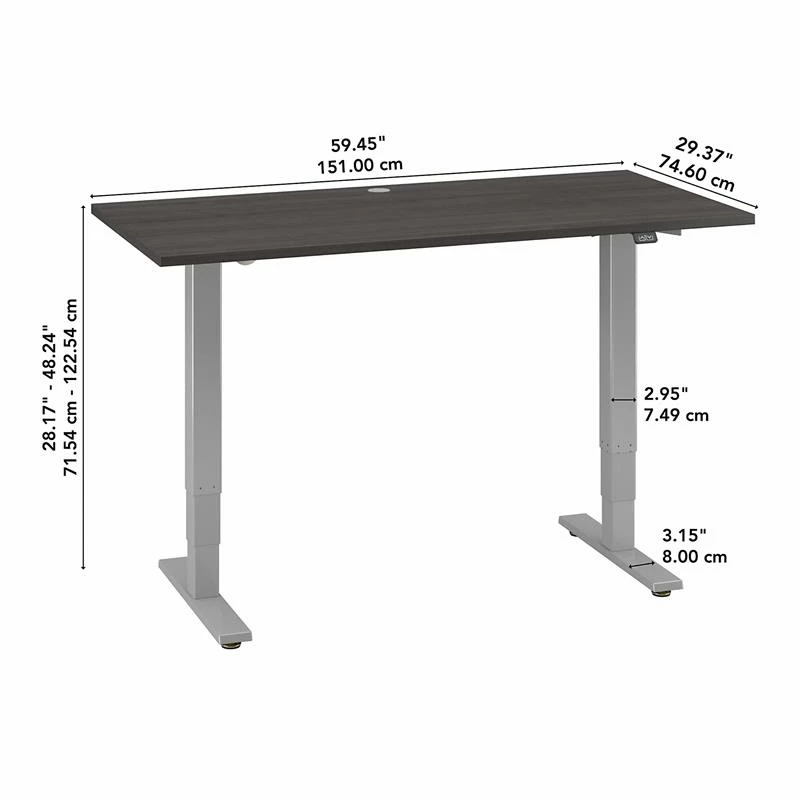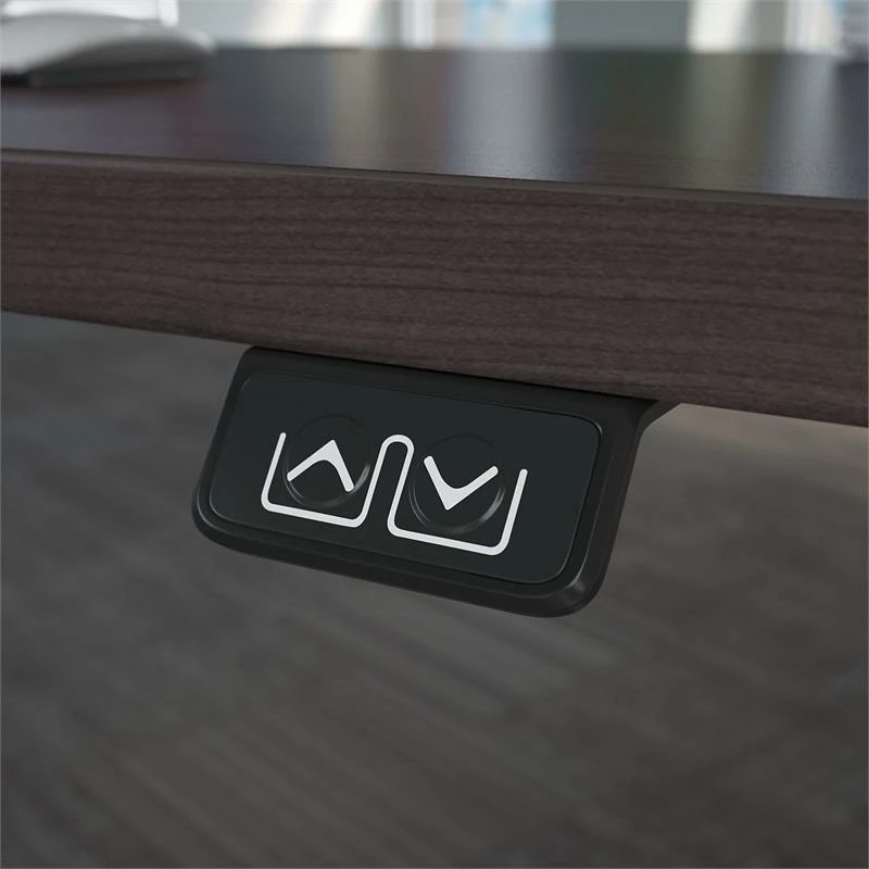 Bush Furniture’s Cabot Electric Height Adjustable Standing Desk is a perfect way to build an ergonomic workspace without the high-end price tag. Give your body and mind a break from sedentary work and enjoy a healthier, more productive office with the push of a button. Three stage units lift the 60W x 30D desktop anywhere from 28 to 48 inches at a speed of 1.25 inches per second so you can change positions without missing a beat. The Adjustable Desk also features an Anti-Collision Sensor that stops movement up or down if an object is detected. Available in a variety of attractive finishes, the durable thermally fused laminate work surface resists scratches and stains while a welded 16 gauge steel base allows the desktop to support up to 176 pounds. This Sit-Stand Desk is tested to meet ANSI/BIFMA standards for safety and performance and is backed by a 5 Year Manufacturer’s Warranty.