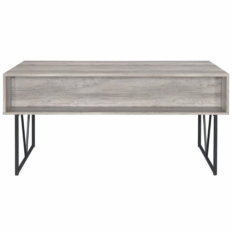 - Gray driftwood finish with sturdy metal base in black