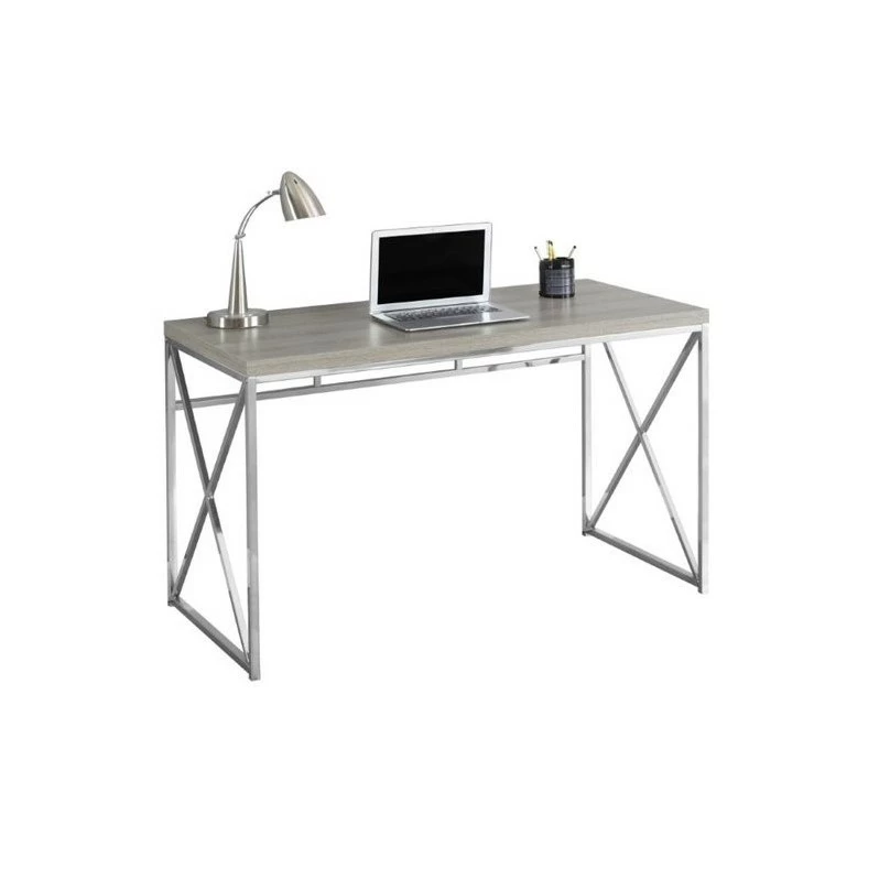 This sleek and contemporary cappuccino desk is the perfect combination of function, durability and design in a modern form. With clean lines a thick panel top and gold criss-cross metal legs, this desk will add pizzazz to any home office. The desk top provides the ideal surface space for a lamp, picture frames, laptop or tablets to meet your working needs.