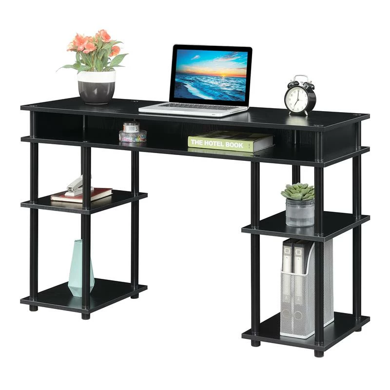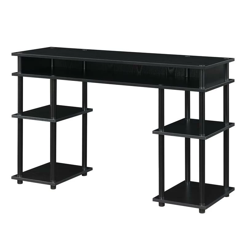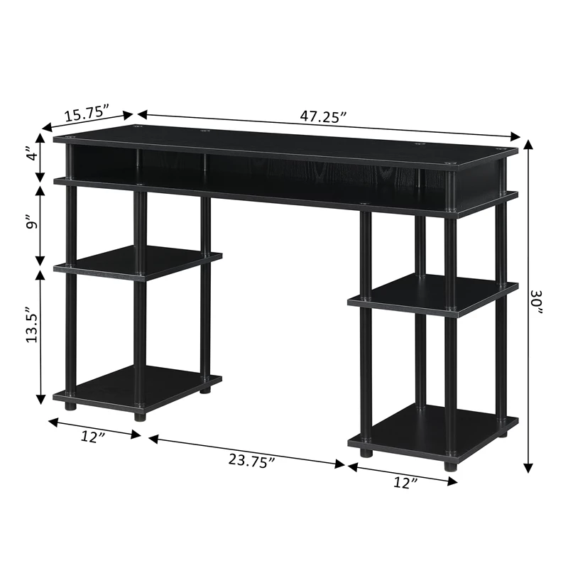 Looking for a convenient space to work with lots of storage space? The Designs2Go No-Tools Student Desk with Shelves by Convenience Concepts is the perfect solution! Great for an office or dorm, this modern desk features plenty of storage space with a unique assembly that requires no tools. The thick particleboard shelving is supported by powder-coated stainless steel legs that will not rust, while plastic caps with rubber soles cover the bottom to help protect your floors. This desk is not only for a student, but anyone wanting to add simplicity to their workload. Add coordinating pieces from the Designs2Go Collection by Convenience Concepts, each sold separately.