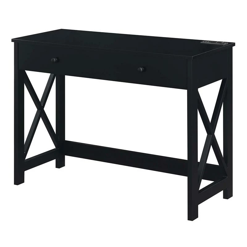Looking for a place to work or study that offers style and functionality? The Oxford 42-Inch Desk with Charging Station by Convenience Concepts will do just that! This contemporary design boasts a spacious surface that offers plenty of room for a laptop, notebook, and cup of coffee. The charging station conveniently located on the desktop includes two standard outlets and two USB ports which can charge a phone, tablet, laptop and more. The power supply cord is six feet in length, giving this desk the flexibility needed when it comes to placement. Also featuring a large single sliding drawer with two nickel knobs, offering plenty of room to store all your office essentials. The transitional X shaped side design is crafted from particle board and MDF for long term durability. Complete your home design with more pieces from the Oxford Collection by Convenience Concepts, each sold separately.
