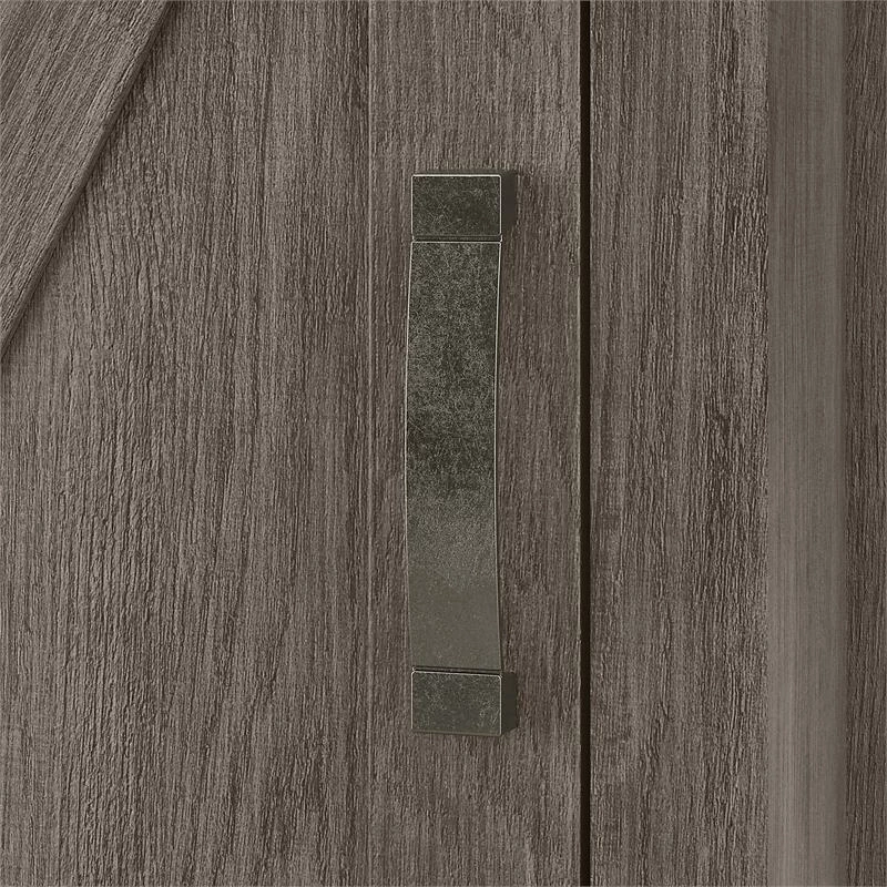 - Diagonal accents, a post leg design and Weathered Nickel hardware present a modern farmhouse style