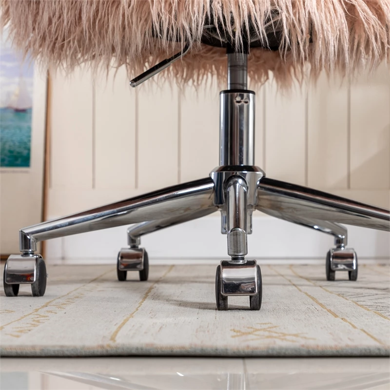 Faux fur home office chair has a soft and comfortable plush, so you can enjoy a comfortable feeling of sitting while working and reduce the fatigue caused by work. The soft foam is wrapped in Faux fur and sits on a sturdy Chrome base with adjustable height and universal wheels. This exquisite luxury home office chair can also be used with a dressing table, a multifunctional chair, easy to move and transport, a perfect chair for girls. Faux fur home office chair, gorgeous appearance full of girl’s dream, to girls also to warm comfortable sitting, relieve fatigue brought about by work.