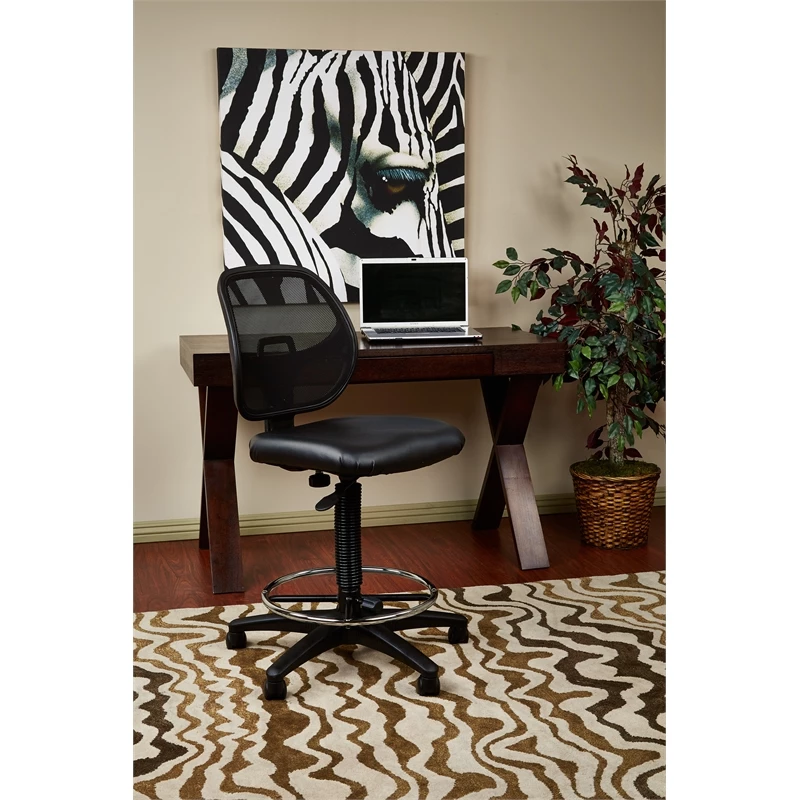 Deluxe Mesh Black Back Drafting Chair with Vinyl Seat