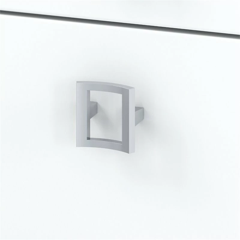 - Pure White finish and Satin Silver hardware create a contemporary charm