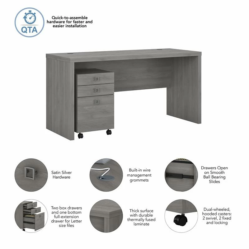 - Bundle includes: 60W Credenza Desk, 3 Drawer Mobile File Cabinet