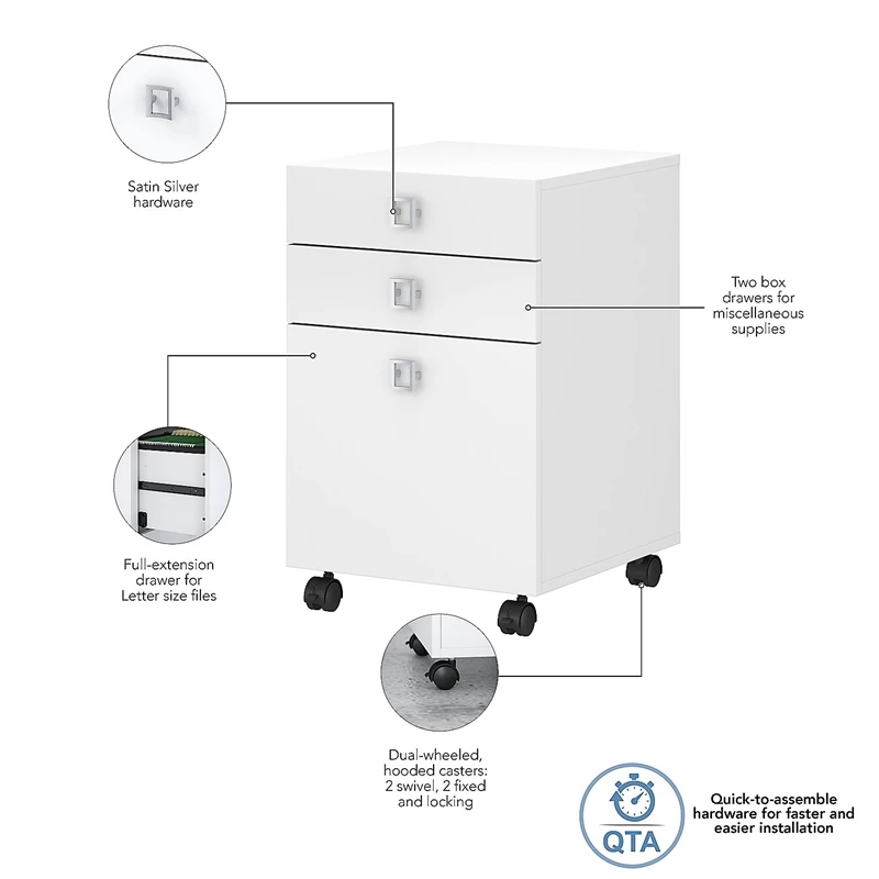 - Rolling File Cabinet fits underneath either desktop for easy access to paperwork and supplies