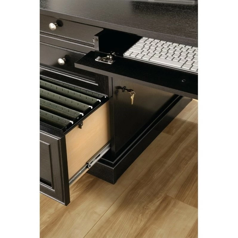 - File drawer with full extension slides holds letter or legal size hanging files