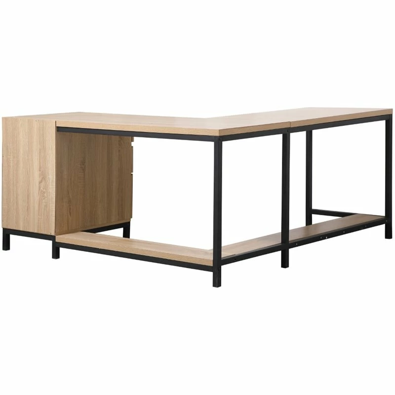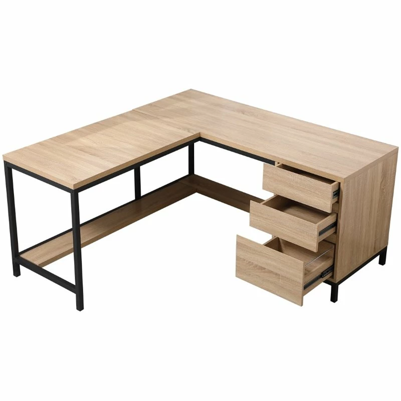 Are you looking for an appropriate desk which can meet your storage demands and has expansive workspace? Then this L-shaped corner desk will be a perfect choice for your home office needs. Plenty of storage space in the cabinet drawers to organize your things. With a industrial look that features two separate work space and a bottom shelf to rest your legs.