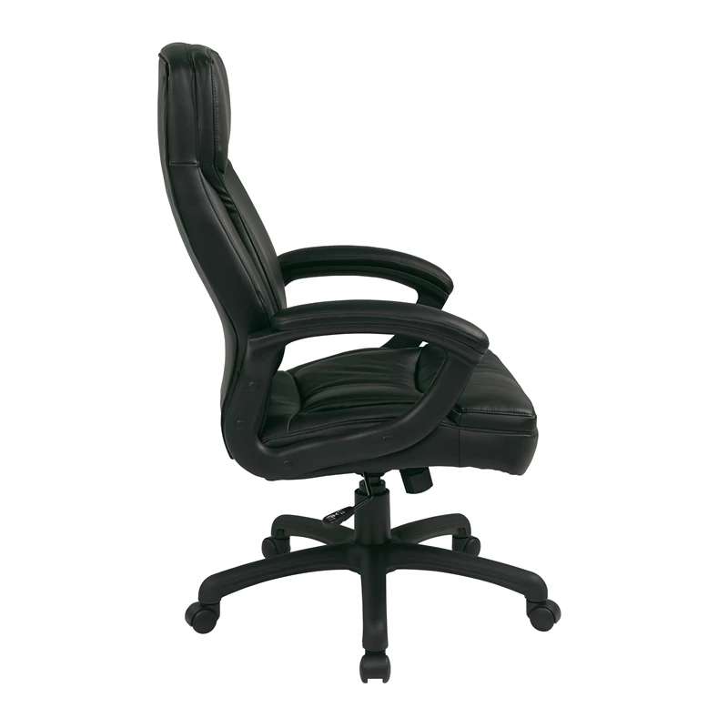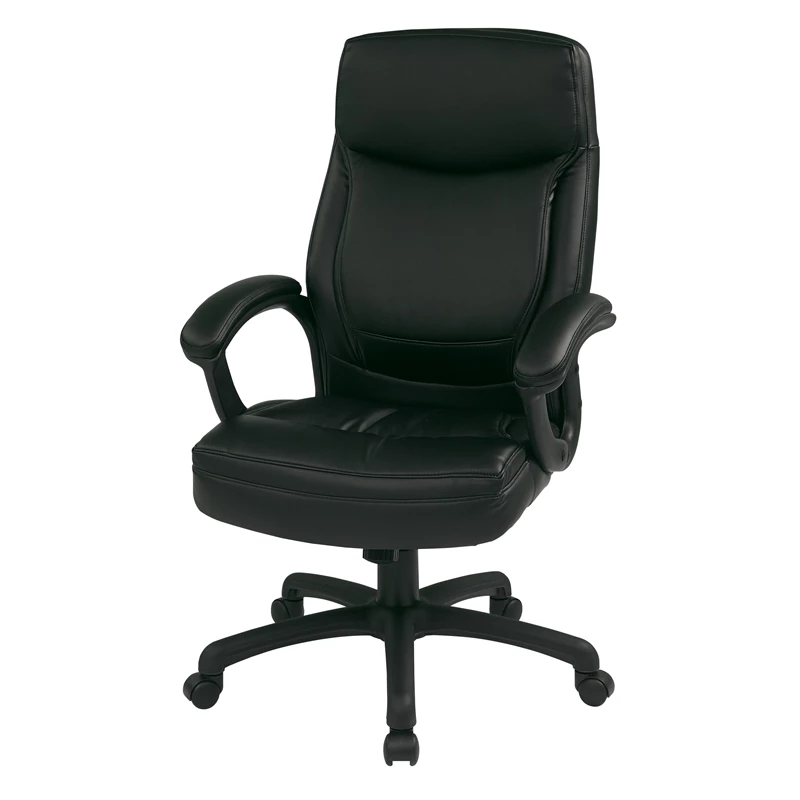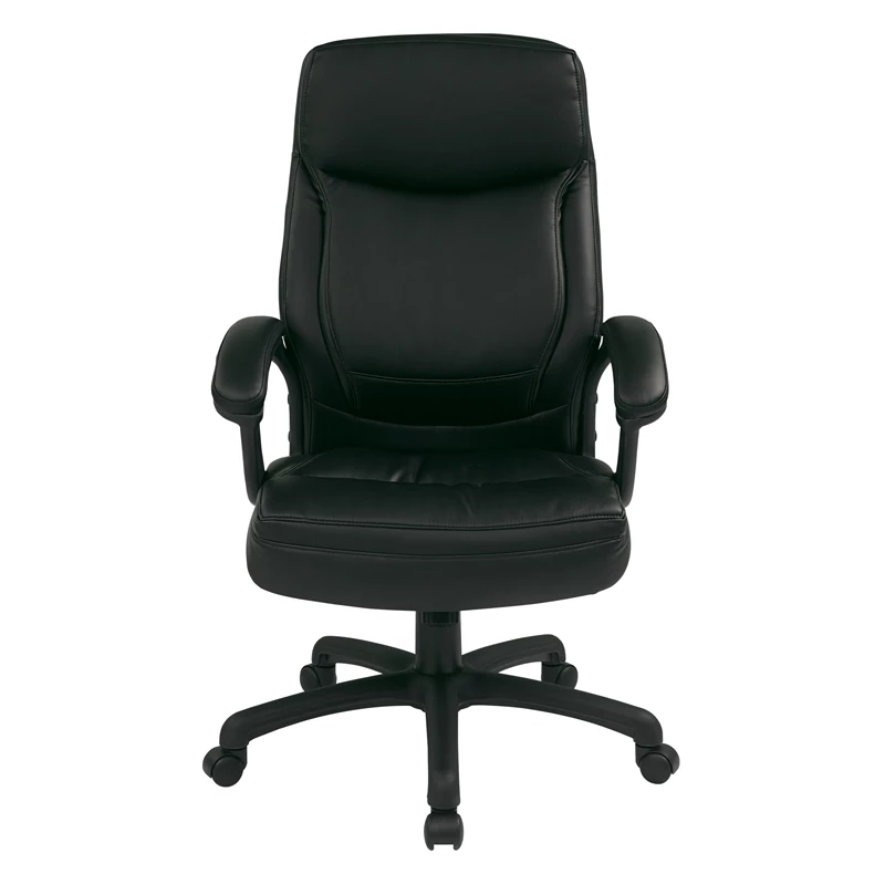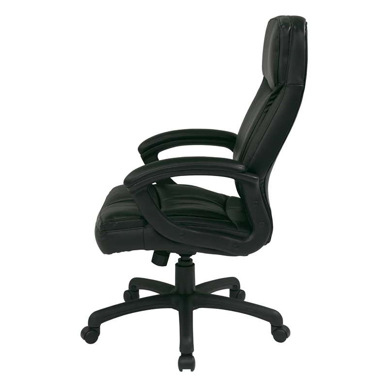 Executive seating chairs provide great comfort for a reasonable price. It features thick padded seats, one touch pneumatic seat height adjustments and padded arms. Bonded Leather completes the design. Locking Tilt Control with Adjustable Tilt Tension. Padded Nylon Loop Arms. Dual Wheel Carpet Casters
