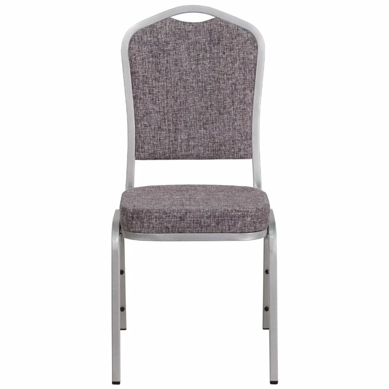 Make an impressive presentation in your banquet hall when clients come to visit your facility with these ballroom chairs. Built for the commercial industry these popular crown back banquet chairs have been tested to hold up to 500 pounds. With a high seating capacity these stack chairs are perfect for the event rental business. This standout hospitality chair can be used as is and still command attention or be dressed up for formal events by placing a chair cover over it. The chair is cushioned with 2.5″ thick CAL 117 fire retardant foam and is covered in durable upholstery for high usage. The sturdy frame with gracefully angled legs are made of 16 gauge steel in a lasting powder coated finish. Double support braces reinforce the frame to give it great strength and durability. Bumper guards prevent scratches on the frame when stacked (up to 15 high) and non-marring floor glides protect your floor by sliding smoothly when you need to move the chair. This multi-use stacking upholstered stack chair is an excellent option for churches, banquet halls, training rooms, hotels, convention centers and schools. Add banquet chairs to your home dining table to add a contrasting look to your dining room or kitchen.