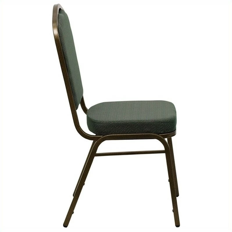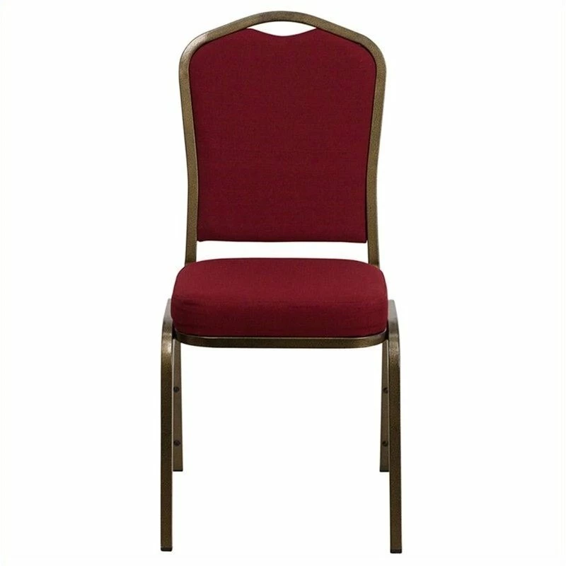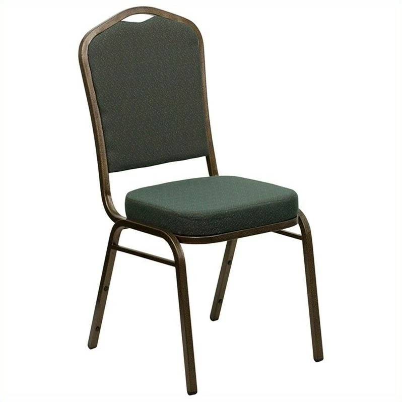 Make an impressive presentation in your banquet hall when clients come to visit your facility with these ballroom chairs. Built for the commercial industry these popular crown back banquet chairs have been tested to hold up to 500 pounds. With a high seating capacity these stack chairs are perfect for the event rental business. This standout hospitality chair can be used as is and still command attention or be dressed up for formal events by placing a chair cover over it. The chair is cushioned with 2.5″ thick CAL 117 fire retardant foam and is covered in durable upholstery for high usage. The sturdy frame with gracefully angled legs are made of 16 gauge steel in a lasting powder coated finish. Double support braces reinforce the frame to give it great strength and durability. Bumper guards prevent scratches on the frame when stacked (up to 15 high) and non-marring floor glides protect your floor by sliding smoothly when you need to move the chair. This multi-use stacking upholstered stack chair is an excellent option for churches, banquet halls, training rooms, hotels, convention centers and schools. Add banquet chairs to your home dining table to add a contrasting look to your dining room or kitchen.