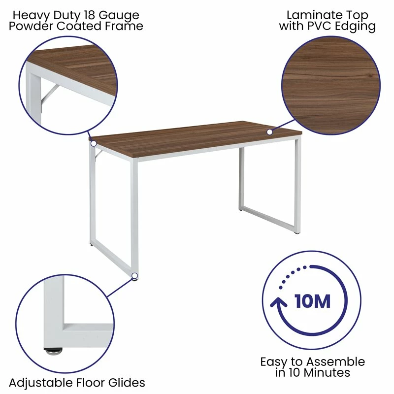 Whether you need a simple style computer desk to furnish your new office suite or are working from home this industrial style office desk offers plenty of tabletop workspace, clean lines, and an elegant modern look suitable for any professional or home decor. Dependable computer furniture is necessary to navigate your business and team members towards success. The ultra-strong 18 gauge metal frame is powder coated to resist damage and will support up to 250 lbs. of static weight. Adjustable floor glides to accommodate uneven flooring to give users a level work surface. No complicated setup gives you full use of your PC computer office table in about 10 minutes without breaking a sweat. Create an office, writing or study space in your loft, living room, or bedroom while maintaining an open concept. This open framed office table was built for commercial settings but is well-suited for home use. With its minimalistic style, you can effortlessly convert this work desk into your game table or dining table.