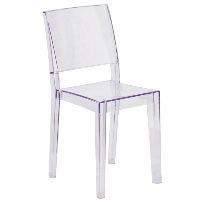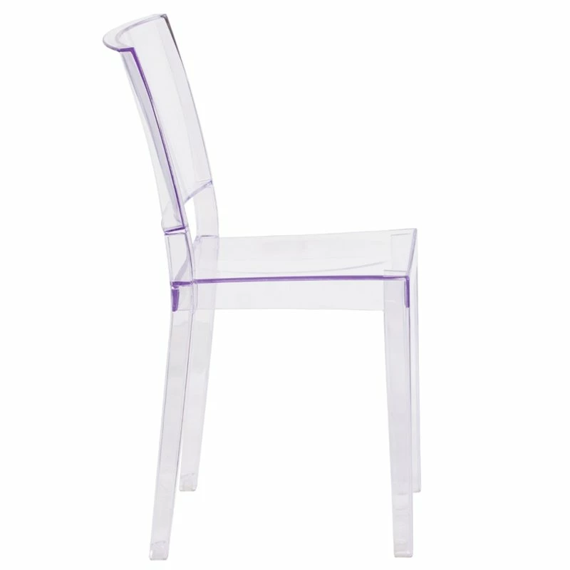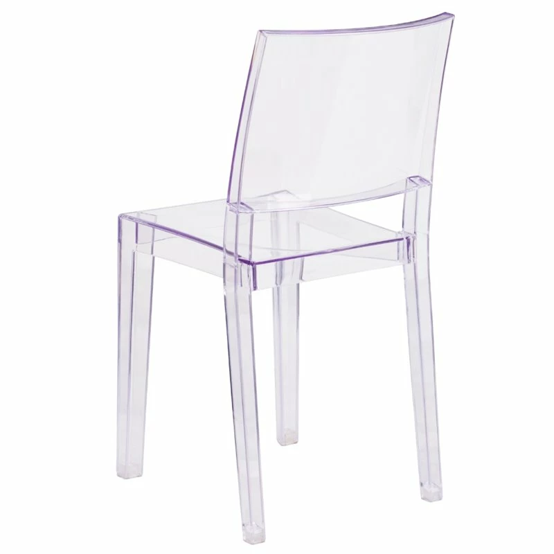 Whether your style is minimalist, modern or classic, you can create a beautifully artistic look with this clear accent side chair. This transparent armless chair lightens up a room by taking up less visual space making it a perfect choice for small spaces. This versatile chair can be used as a blank slate or dressed up with different textiles. Crafted from polycarbonate, this chair is an ingenious combination of lightness and strength. Floor protector rubber glides will protect your flooring when you need to slide the chair. This elegantly designed chair can be used in diverse environments, both indoor and outdoor, and stacks up to 8 high allowing for space-efficient storage. Whether you need a single chair for a specific spot in your home or want to create a breathtaking look in your event venue, this versatile piece is sure to please.