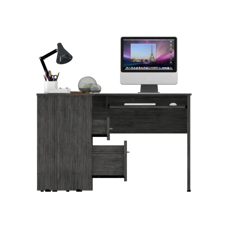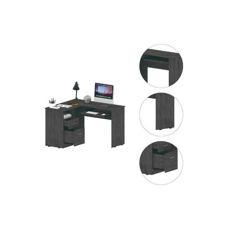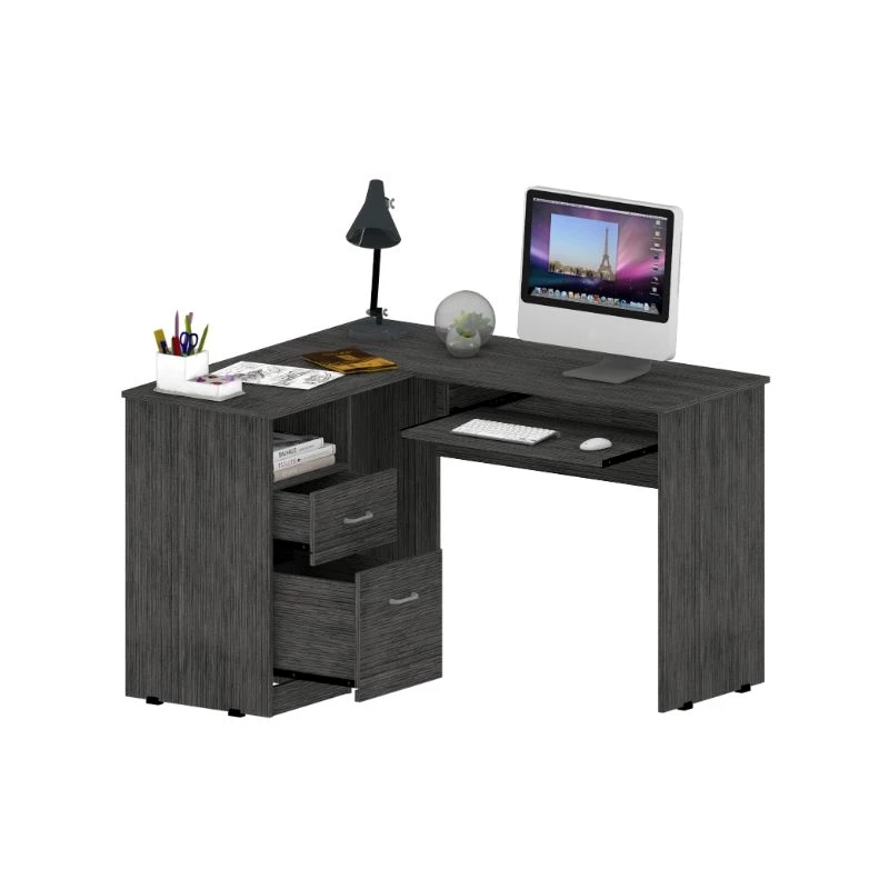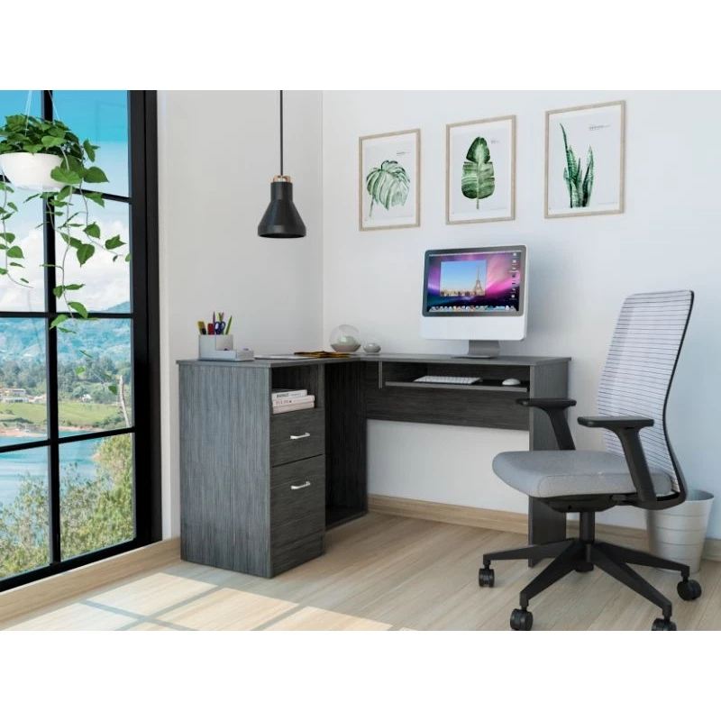 This L-shaped office desk features ample storage and storage of accessories, a hefty load capacity, and a thick panel that makes the desk sturdy. It has easy access for your legs to store all your files, documents, laptop, consoles. Plus, underneath the desk, you will find plenty of space to keep your legs relaxed and place your CPU or other supplies. Its two drawers allow storage of lots of files, books, and more. It has an open shelf to keep the CPU protected, and most importantly, thinking about facilitating the use of the desk, it has a sliding shelf for keyboards, allowing you to hide your keyboard without taking up space on the main surface.