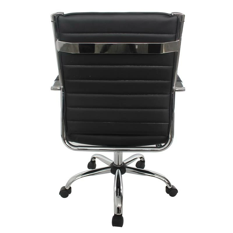Sink into the comfort of this modern black small office chair and watch your productivity soar. Delivering plush cushions and faux leather upholstery with channel tufting, this desk chair rests on a five-point caster base for easy, smooth mobility. Gracefully curves armrests add a decorative touch while providing ergonomic comfort and support. A stylish, contemporary design, this office chair is a fabulous choice for both home and professional workspaces.