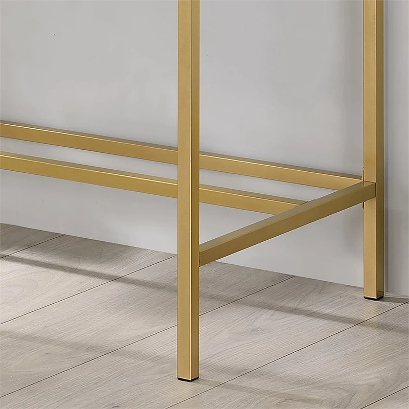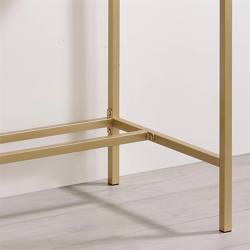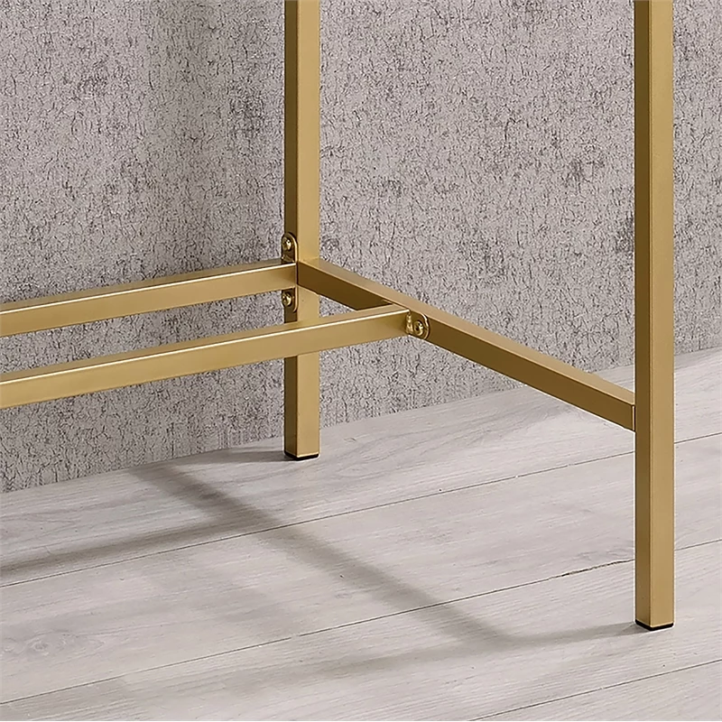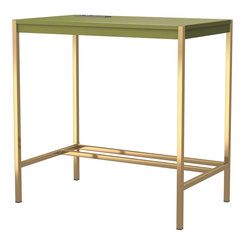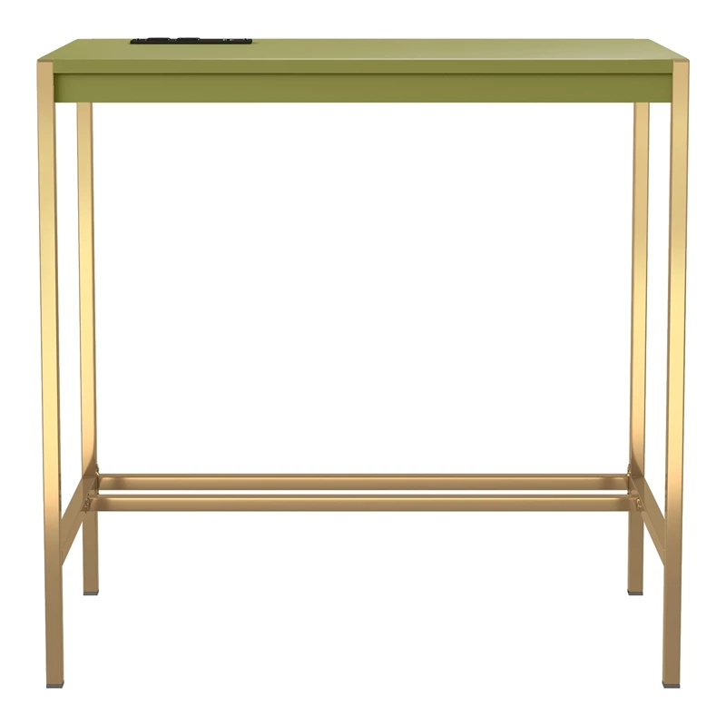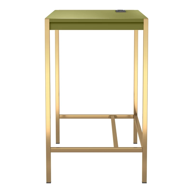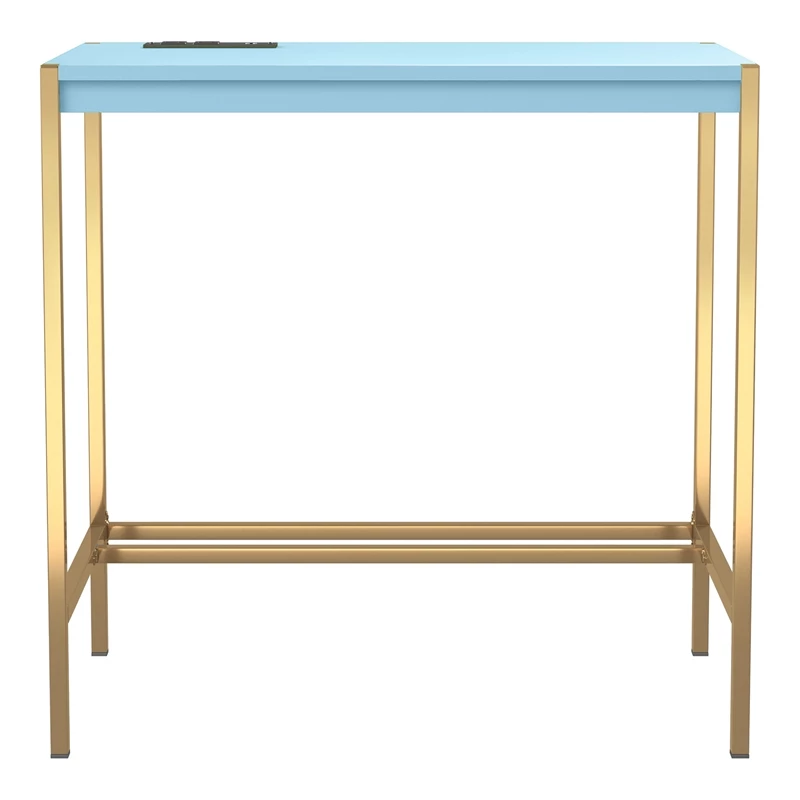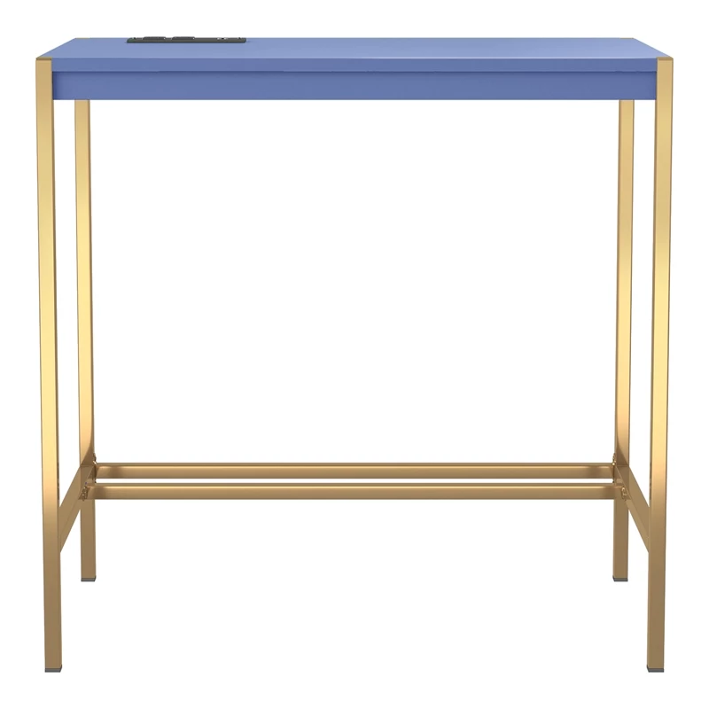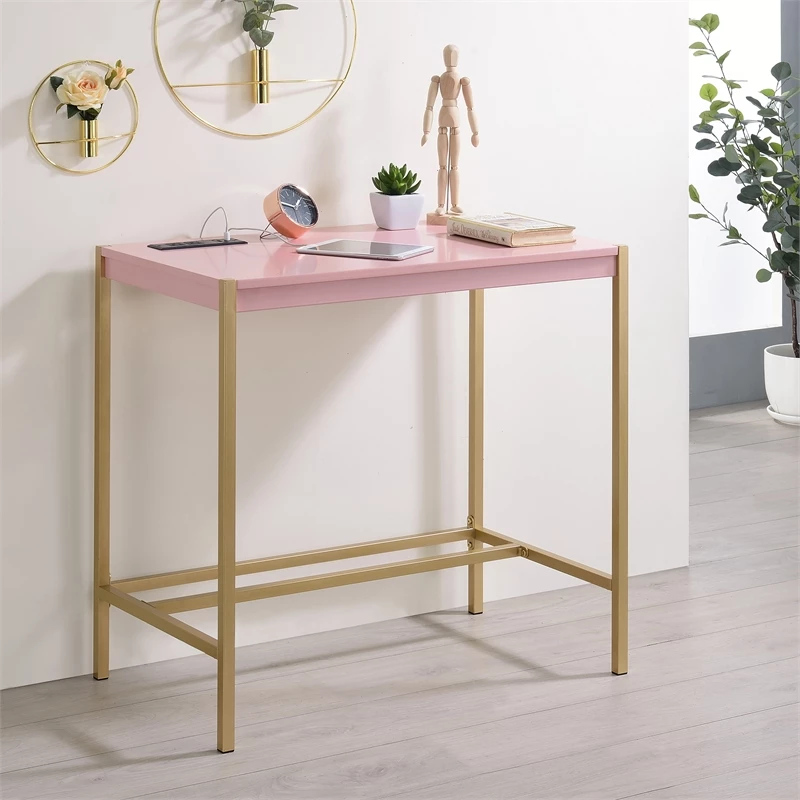 Mixing a gold finish base with a pink top finish, this contemporary metal and wood writing desk offers a compact footprint perfect for a bedroom or living room nook. The desktop features a built-in USB and electrical panel that create easy access to plug in your laptop or charge your phone while you work. Clean and sleek, this writing desk is a fun addition that perks up any decor.