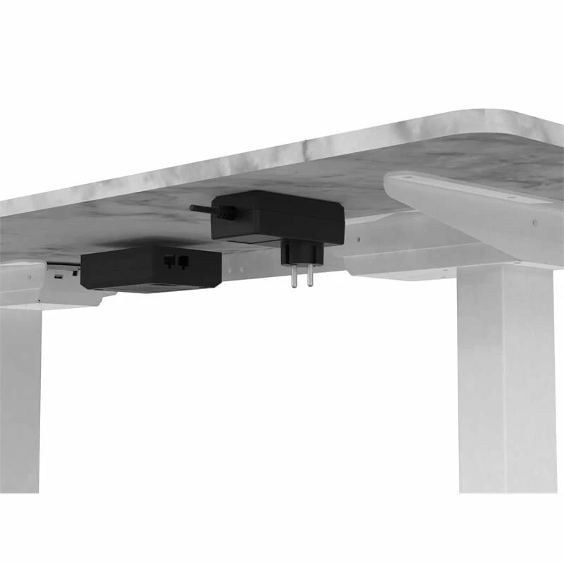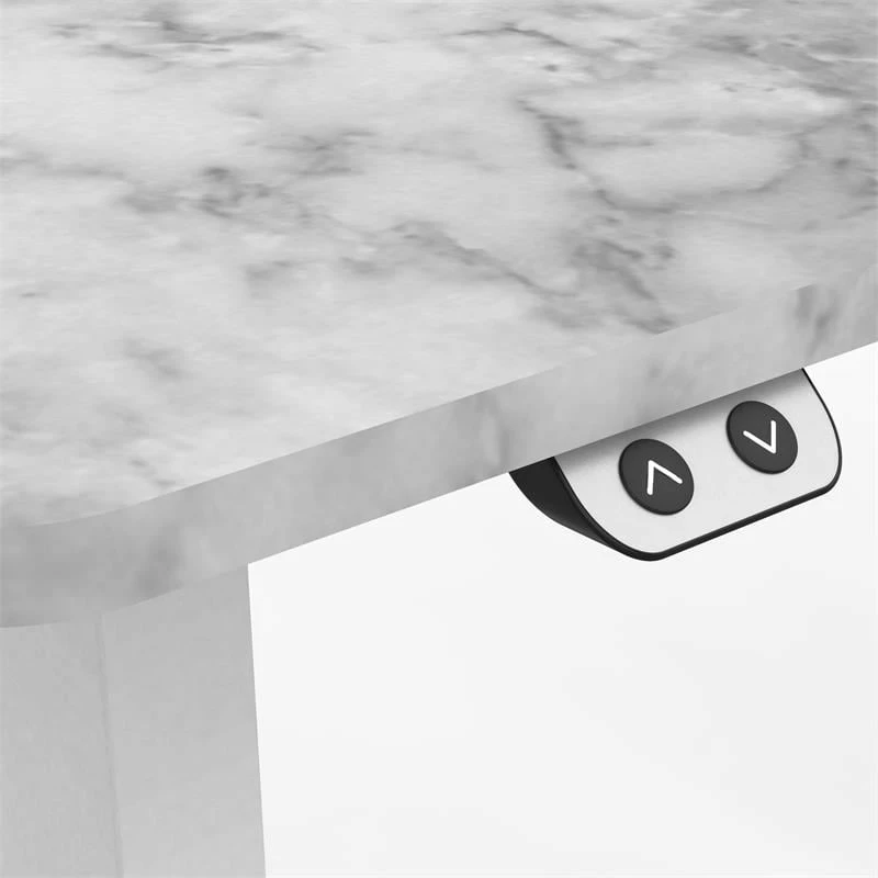 Upgrade your home office space with a functional and health-conscious adjustable natural and white desk. Sitting for hours and hours adds tension to your neck, back, and waist. This wood and metal desk allows you to switch back and forth between positions at a click of a button. Steel frame provides a durable workspace. Multiple uses include use for a virtual learning desk and a homework station.